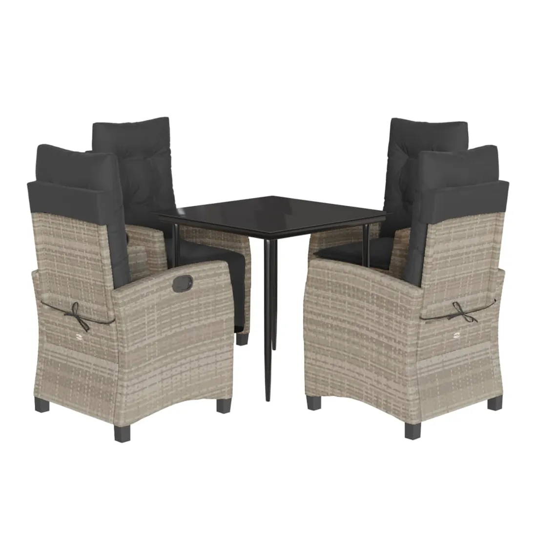 Cet ensemble de salle à manger de jardin est un excellent choix pour les repas en plein air ou pour vous détendre dans le jardin, l'arrière-cour ou le patio. Matériau durable : la résine tressée, également connue sous le nom de poly rotin, est un matériau synthétique solide et nécessitant peu d'entretien qui ressemble au rotin naturel. Il est léger, facile à nettoyer et couramment utilisé pour les meubles d'extérieur en raison de sa durabilité et de ses propriétés de résistance aux intempéries. Dossier réglable : ce siège de jardin est doté d'une poignée. Vous pouvez régler le dossier dans n'importe quelle position en tirant sur la poignée et le remettre rapidement dans sa position initiale.Dessus en verre : le dessus de la table d'extérieur est fabriqué en verre trempé solide et durable, ce qui le rend facile à nettoyer avec un chiffon humide et ajoute une touche d'élégance à votre espace extérieur. Expérience d'assise confortable : ce mobilier d'extérieur, doté de coussins épais, offre une expérience d'assise confortable. Housse amovible et lavable : ces coussins de siège sont dotés de housses amovibles pour un lavage et un entretien faciles. Bon à savoir :Pour que vos meubles d'extérieur restent beaux, nous vous recommandons de les protéger avec une housse imperméable.