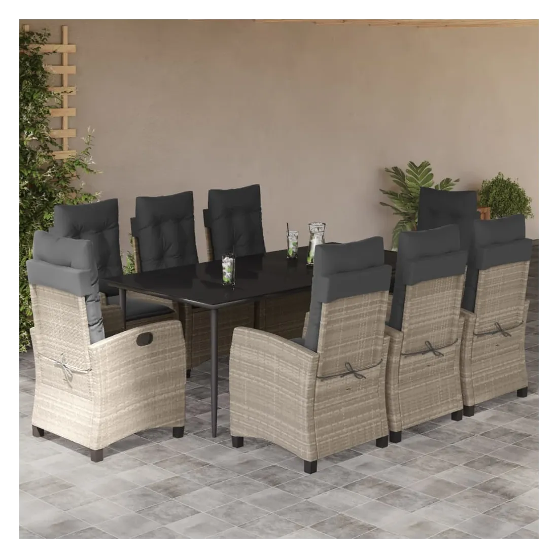 Cet ensemble de salle à manger de jardin est un excellent choix pour les repas en plein air ou pour vous détendre dans le jardin, l'arrière-cour ou le patio. Matériau durable : la résine tressée, également connue sous le nom de poly rotin, est un matériau synthétique solide et nécessitant peu d'entretien qui ressemble au rotin naturel. Il est léger, facile à nettoyer et couramment utilisé pour les meubles d'extérieur en raison de sa durabilité et de ses propriétés de résistance aux intempéries. Dossier réglable : ce siège de jardin est doté d'une poignée. Vous pouvez régler le dossier dans n'importe quelle position en tirant sur la poignée et le remettre rapidement dans sa position initiale.Dessus en verre : le dessus de la table d'extérieur est fabriqué en verre trempé solide et durable, ce qui le rend facile à nettoyer avec un chiffon humide et ajoute une touche d'élégance à votre espace extérieur. Expérience d'assise confortable : ce mobilier d'extérieur, doté de coussins épais, offre une expérience d'assise confortable. Housse amovible et lavable : ces coussins de siège sont dotés de housses amovibles pour un lavage et un entretien faciles. Bon à savoir :Pour que vos meubles d'extérieur restent beaux, nous vous recommandons de les protéger avec une housse imperméable.
