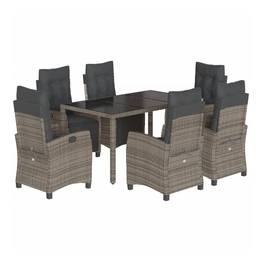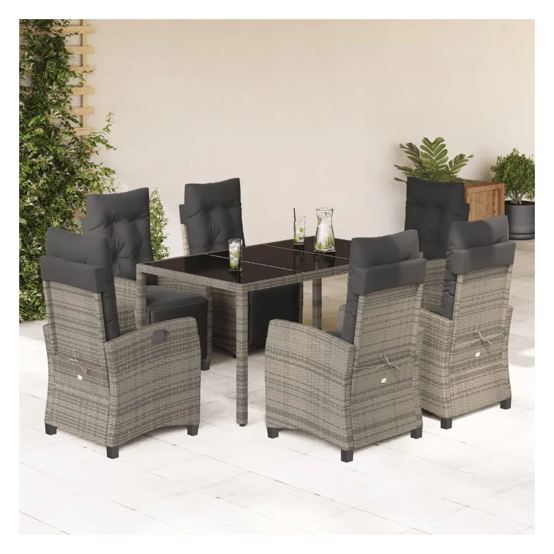 Cet ensemble de salle à manger de jardin est un excellent choix pour les repas en plein air ou pour vous détendre dans le jardin, l'arrière-cour ou le patio. Matériau durable : la résine tressée, également connue sous le nom de poly rotin, est un matériau synthétique solide et nécessitant peu d'entretien qui ressemble au rotin naturel. Il est léger, facile à nettoyer et couramment utilisé pour les meubles d'extérieur en raison de sa durabilité et de ses propriétés de résistance aux intempéries.Dossier et repose-pied réglables : ce siège de jardin est doté d'une poignée. Vous pouvez régler le dossier et le repose-pied dans n'importe quelle position en tirant sur la poignée, et les remettre rapidement dans leur position initiale.Dessus en verre : le dessus de la table d'extérieur est fabriqué en verre trempé solide et durable, ce qui le rend facile à nettoyer avec un chiffon humide et ajoute une touche d'élégance à votre espace extérieur.Expérience d'assise confortable : ce mobilier d'extérieur, doté de coussins épais, offre une expérience d'assise confortable.Housse amovible et lavable : ces coussins de siège sont dotés de housses amovibles pour un lavage et un entretien faciles. Bon à savoir :Pour que vos meubles d'extérieur restent beaux, nous vous recommandons de les protéger avec une housse imperméable.