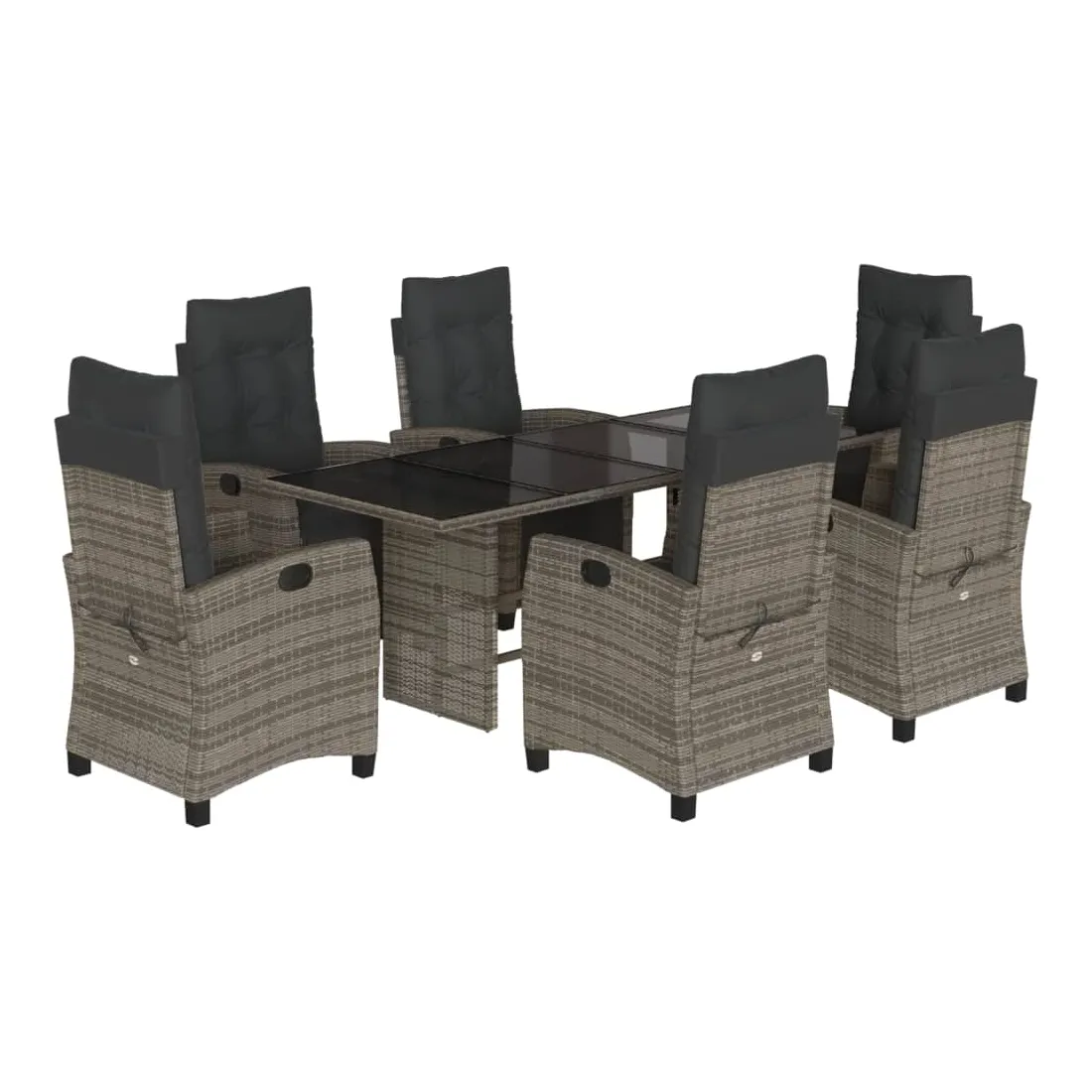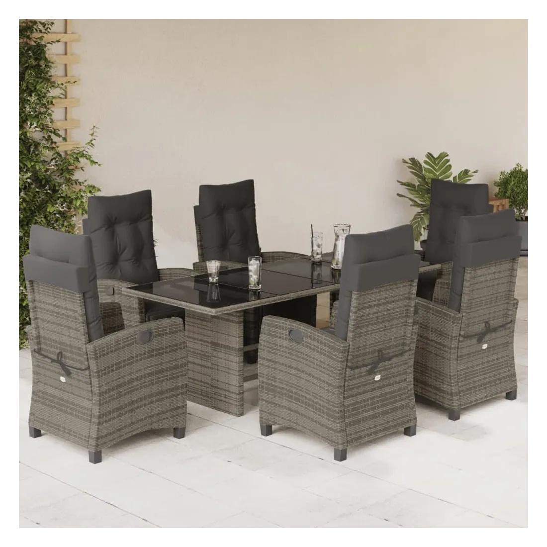 Cet ensemble de salle à manger de jardin est un excellent choix pour les repas en plein air ou pour vous détendre dans le jardin, l'arrière-cour ou le patio. Matériau durable : la résine tressée, également connue sous le nom de poly rotin, est un matériau synthétique solide et nécessitant peu d'entretien qui ressemble au rotin naturel. Il est léger, facile à nettoyer et couramment utilisé pour les meubles d'extérieur en raison de sa durabilité et de ses propriétés de résistance aux intempéries.Dossier et repose-pied réglables : ce siège de jardin est doté d'une poignée. Vous pouvez régler le dossier et le repose-pied dans n'importe quelle position en tirant sur la poignée, et les remettre rapidement dans leur position initiale.Dessus en verre : le dessus de la table d'extérieur est fabriqué en verre trempé solide et durable, ce qui le rend facile à nettoyer avec un chiffon humide et ajoute une touche d'élégance à votre espace extérieur.Expérience d'assise confortable : ce mobilier d'extérieur, doté de coussins épais, offre une expérience d'assise confortable.Housse amovible et lavable : ces coussins de siège sont dotés de housses amovibles pour un lavage et un entretien faciles. Bon à savoir :Pour que vos meubles d'extérieur restent beaux, nous vous recommandons de les protéger avec une housse imperméable.