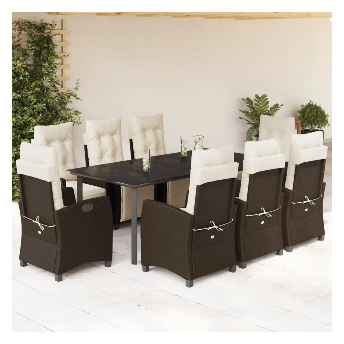 Cet ensemble de salle à manger de jardin est un excellent choix pour les repas en plein air ou pour vous détendre dans le jardin, l'arrière-cour ou le patio. Matériau durable : la résine tressée, également connue sous le nom de poly rotin, est un matériau synthétique solide et nécessitant peu d'entretien qui ressemble au rotin naturel. Il est léger, facile à nettoyer et couramment utilisé pour les meubles d'extérieur en raison de sa durabilité et de ses propriétés de résistance aux intempéries.Dossier et repose-pied réglables : ce siège de jardin est doté d'une poignée. Vous pouvez régler le dossier et le repose-pied dans n'importe quelle position en tirant sur la poignée, et les remettre rapidement dans leur position initiale.Dessus en verre : le dessus de la table d'extérieur est fabriqué en verre trempé solide et durable, ce qui le rend facile à nettoyer avec un chiffon humide et ajoute une touche d'élégance à votre espace extérieur.Expérience d'assise confortable : ce mobilier d'extérieur, doté de coussins épais, offre une expérience d'assise confortable.Housse amovible et lavable : ces coussins de siège sont dotés de housses amovibles pour un lavage et un entretien faciles. Bon à savoir :Pour que vos meubles d'extérieur restent beaux, nous vous recommandons de les protéger avec une housse imperméable.
