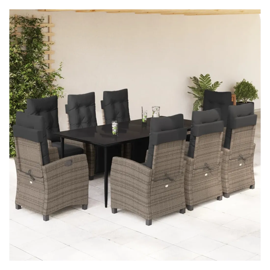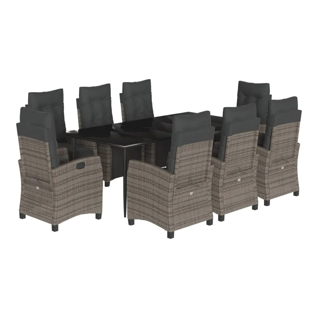 Cet ensemble de salle à manger de jardin est un excellent choix pour les repas en plein air ou pour vous détendre dans le jardin, l'arrière-cour ou le patio. Matériau durable : la résine tressée, également connue sous le nom de poly rotin, est un matériau synthétique solide et nécessitant peu d'entretien qui ressemble au rotin naturel. Il est léger, facile à nettoyer et couramment utilisé pour les meubles d'extérieur en raison de sa durabilité et de ses propriétés de résistance aux intempéries.Dossier et repose-pied réglables : ce siège de jardin est doté d'une poignée. Vous pouvez régler le dossier et le repose-pied dans n'importe quelle position en tirant sur la poignée, et les remettre rapidement dans leur position initiale.Dessus en verre : le dessus de la table d'extérieur est fabriqué en verre trempé solide et durable, ce qui le rend facile à nettoyer avec un chiffon humide et ajoute une touche d'élégance à votre espace extérieur.Expérience d'assise confortable : ce mobilier d'extérieur, doté de coussins épais, offre une expérience d'assise confortable.Housse amovible et lavable : ces coussins de siège sont dotés de housses amovibles pour un lavage et un entretien faciles. Bon à savoir :Pour que vos meubles d'extérieur restent beaux, nous vous recommandons de les protéger avec une housse imperméable.