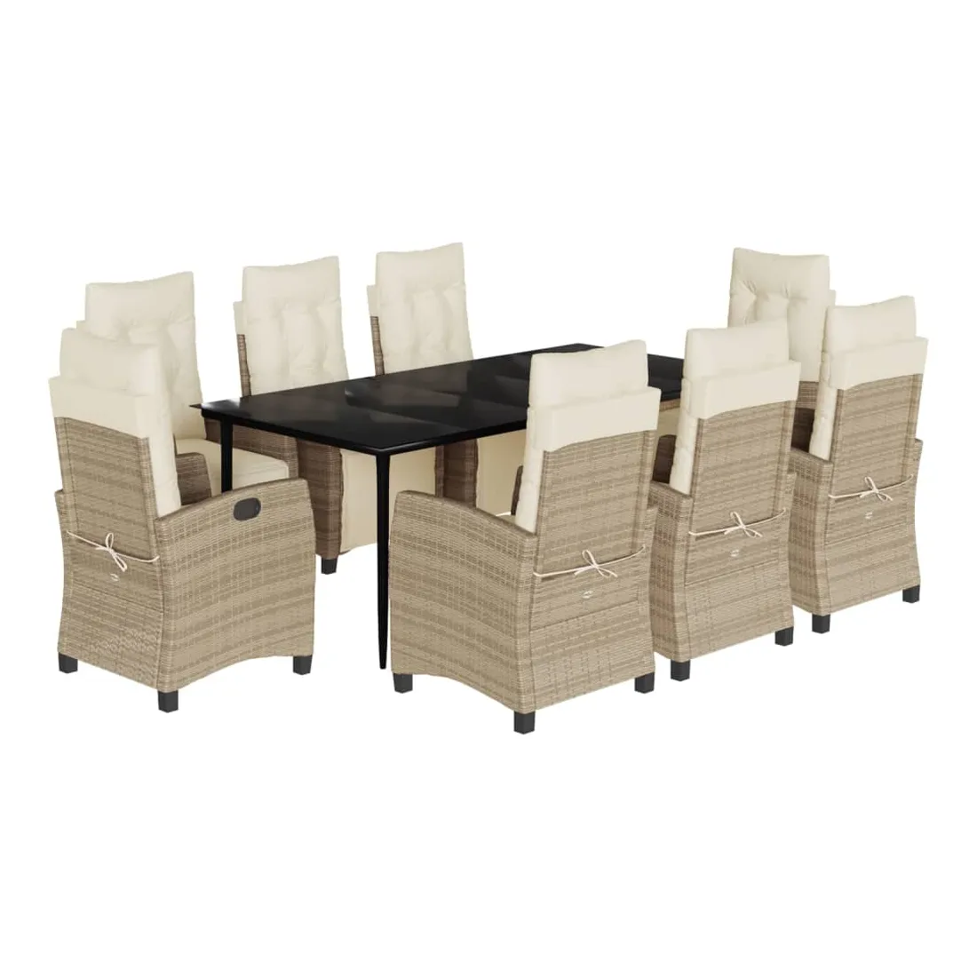 Cet ensemble de salle à manger de jardin est un excellent choix pour les repas en plein air ou pour vous détendre dans le jardin, l'arrière-cour ou le patio. Matériau durable : la résine tressée, également connue sous le nom de poly rotin, est un matériau synthétique solide et nécessitant peu d'entretien qui ressemble au rotin naturel. Il est léger, facile à nettoyer et couramment utilisé pour les meubles d'extérieur en raison de sa durabilité et de ses propriétés de résistance aux intempéries.Dossier et repose-pied réglables : ce siège de jardin est doté d'une poignée. Vous pouvez régler le dossier et le repose-pied dans n'importe quelle position en tirant sur la poignée, et les remettre rapidement dans leur position initiale.Dessus en verre : le dessus de la table d'extérieur est fabriqué en verre trempé solide et durable, ce qui le rend facile à nettoyer avec un chiffon humide et ajoute une touche d'élégance à votre espace extérieur.Expérience d'assise confortable : ce mobilier d'extérieur, doté de coussins épais, offre une expérience d'assise confortable.Housse amovible et lavable : ces coussins de siège sont dotés de housses amovibles pour un lavage et un entretien faciles. Bon à savoir :Pour que vos meubles d'extérieur restent beaux, nous vous recommandons de les protéger avec une housse imperméable.