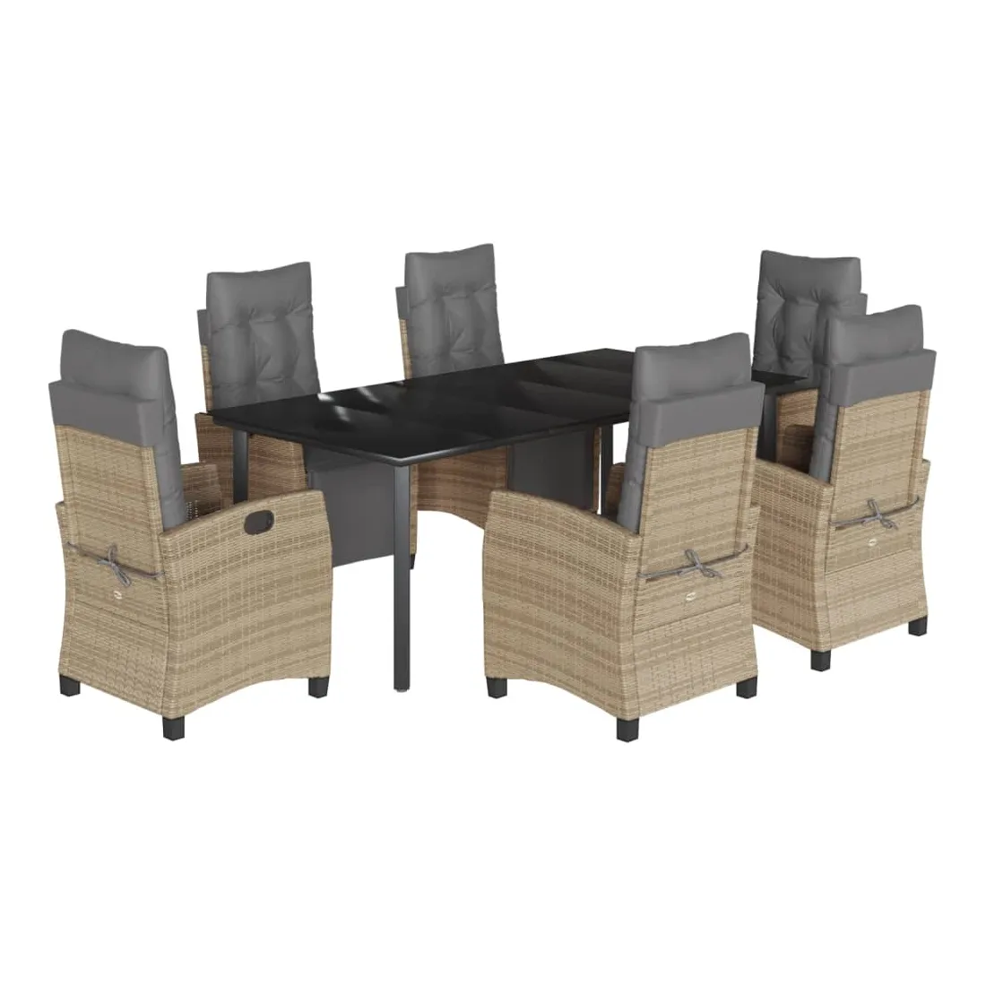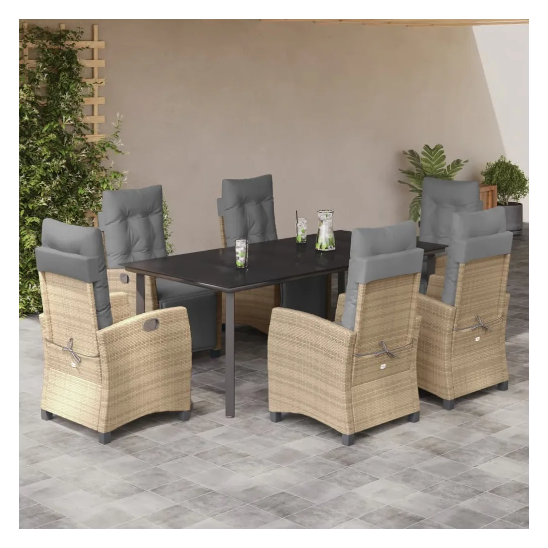 vidaXLCet ensemble de salle à manger de jardin est un excellent choix pour les repas en plein air ou pour vous détendre dans le jardin, l'arrière-cour ou le patio. Matériau durable : la résine tressée, également connue sous le nom de poly rotin, est un matériau synthétique solide et nécessitant peu d'entretien qui ressemble au rotin naturel. Il est léger, facile à nettoyer et couramment utilisé pour les meubles d'extérieur en raison de sa durabilité et de ses propriétés de résistance aux intempéries.Dossier et repose-pied réglables : ce siège de jardin est doté d'une poignée. Vous pouvez régler le dossier et le repose-pied dans n'importe quelle position en tirant sur la poignée, et les remettre rapidement dans leur position initiale.Dessus en verre : le dessus de la table d'extérieur est fabriqué en verre trempé solide et durable, ce qui le rend facile à nettoyer avec un chiffon humide et ajoute une touche d'élégance à votre espace extérieur.Expérience d'assise confortable : ce mobilier d'extérieur, doté de coussins épais, offre une expérience d'assise confortable.Housse amovible et lavable : ces coussins de siège sont dotés de housses amovibles pour un lavage et un entretien faciles. Bon à savoir :Pour que vos meubles d'extérieur restent beaux, nous vous recommandons de les protéger avec une housse imperméable.