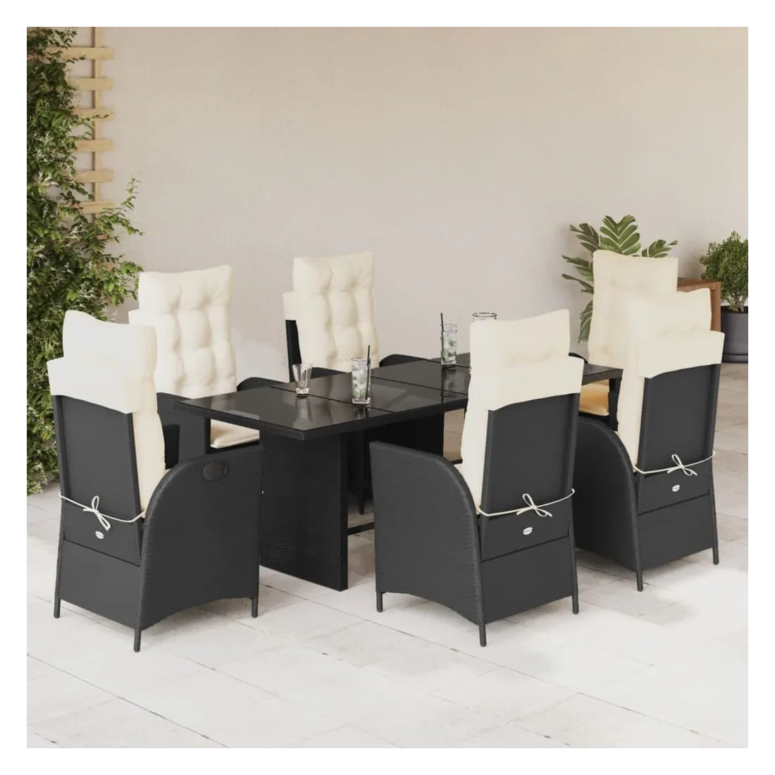 Cet ensemble de salle à manger de jardin est un excellent choix pour les repas en plein air ou pour vous détendre dans le jardin, dans l'arrière-cour ou sur la terrasse. Matériau durable : la résine tressée, également connue sous le nom de poly rotin, est un matériau synthétique solide et nécessitant peu d'entretien qui ressemble au rotin naturel. Il est léger, facile à nettoyer et couramment utilisé pour les meubles d'extérieur en raison de sa durabilité et de ses propriétés de résistance aux intempéries.Dossier réglable : ce siège de jardin est doté d'une poignée. Vous pouvez régler le dossier dans n'importe quelle position en tirant sur la poignée et le remettre rapidement dans sa position initiale.Expérience d'assise confortable : ce mobilier d'extérieur, doté de coussins épais, offre une expérience d'assise confortable.Housse amovible et lavable : ces coussins de siège sont dotés de housses amovibles pour un lavage et un entretien faciles. Les coussins de dossier ont un rabat à l'arrière pour une fixation facile aux dossiers.Dessus en verre : le dessus de la table d'extérieur est fabriqué en verre trempé solide et durable, ce qui le rend facile à nettoyer avec un chiffon humide et ajoute une touche d'élégance à votre espace extérieur. Bon à savoir : Pour que vos meubles d'extérieur restent beaux, nous vous recommandons de les protéger avec une housse imperméable.