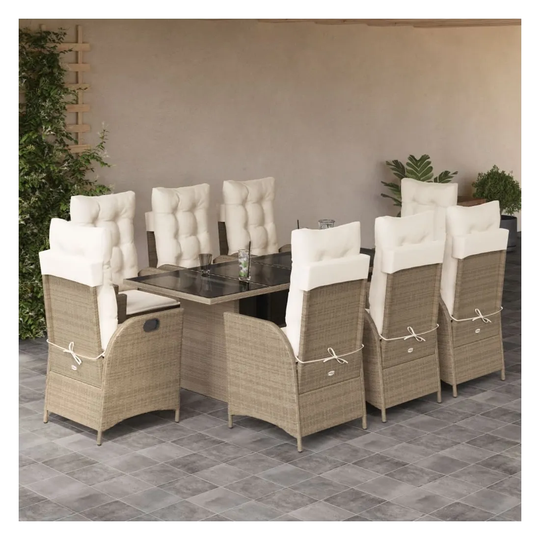 Cet ensemble de salle à manger de jardin est un excellent choix pour les repas en plein air ou pour vous détendre dans le jardin, dans l'arrière-cour ou sur la terrasse. Matériau durable : la résine tressée, également connue sous le nom de poly rotin, est un matériau synthétique solide et nécessitant peu d'entretien qui ressemble au rotin naturel. Il est léger, facile à nettoyer et couramment utilisé pour les meubles d'extérieur en raison de sa durabilité et de ses propriétés de résistance aux intempéries.Dossier réglable : ce siège de jardin est doté d'une poignée. Vous pouvez régler le dossier dans n'importe quelle position en tirant sur la poignée et le remettre rapidement dans sa position initiale.Expérience d'assise confortable : ce mobilier d'extérieur, doté de coussins épais, offre une expérience d'assise confortable.Housse amovible et lavable : ces coussins de siège sont dotés de housses amovibles pour un lavage et un entretien faciles. Les coussins de dossier ont un rabat à l'arrière pour une fixation facile aux dossiers.Dessus en verre : le dessus de la table d'extérieur est fabriqué en verre trempé solide et durable, ce qui le rend facile à nettoyer avec un chiffon humide et ajoute une touche d'élégance à votre espace extérieur. Bon à savoir : Pour que vos meubles d'extérieur restent beaux, nous vous recommandons de les protéger avec une housse imperméable.