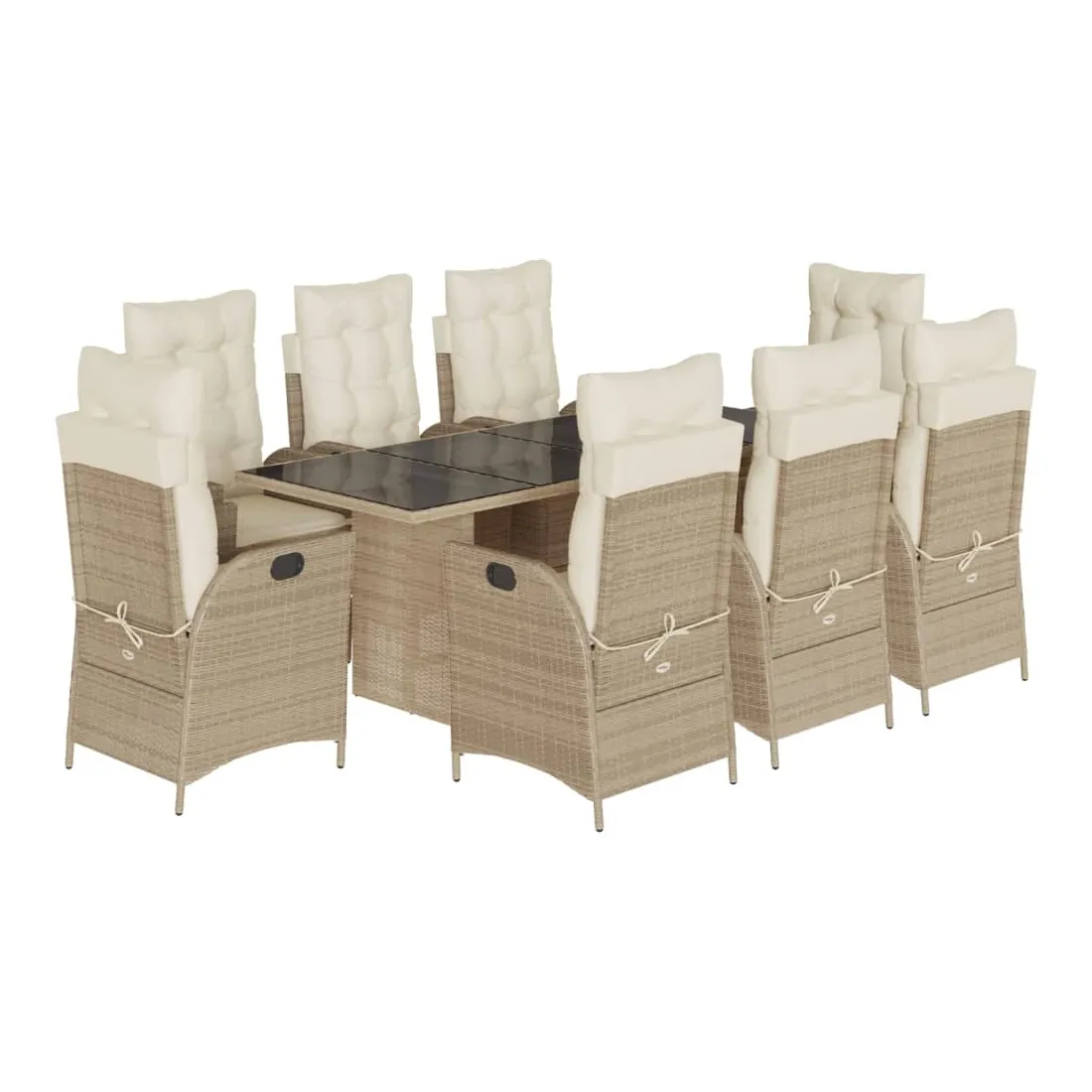 Cet ensemble de salle à manger de jardin est un excellent choix pour les repas en plein air ou pour vous détendre dans le jardin, dans l'arrière-cour ou sur la terrasse. Matériau durable : la résine tressée, également connue sous le nom de poly rotin, est un matériau synthétique solide et nécessitant peu d'entretien qui ressemble au rotin naturel. Il est léger, facile à nettoyer et couramment utilisé pour les meubles d'extérieur en raison de sa durabilité et de ses propriétés de résistance aux intempéries.Dossier réglable : ce siège de jardin est doté d'une poignée. Vous pouvez régler le dossier dans n'importe quelle position en tirant sur la poignée et le remettre rapidement dans sa position initiale.Expérience d'assise confortable : ce mobilier d'extérieur, doté de coussins épais, offre une expérience d'assise confortable.Housse amovible et lavable : ces coussins de siège sont dotés de housses amovibles pour un lavage et un entretien faciles. Les coussins de dossier ont un rabat à l'arrière pour une fixation facile aux dossiers.Dessus en verre : le dessus de la table d'extérieur est fabriqué en verre trempé solide et durable, ce qui le rend facile à nettoyer avec un chiffon humide et ajoute une touche d'élégance à votre espace extérieur. Bon à savoir : Pour que vos meubles d'extérieur restent beaux, nous vous recommandons de les protéger avec une housse imperméable.