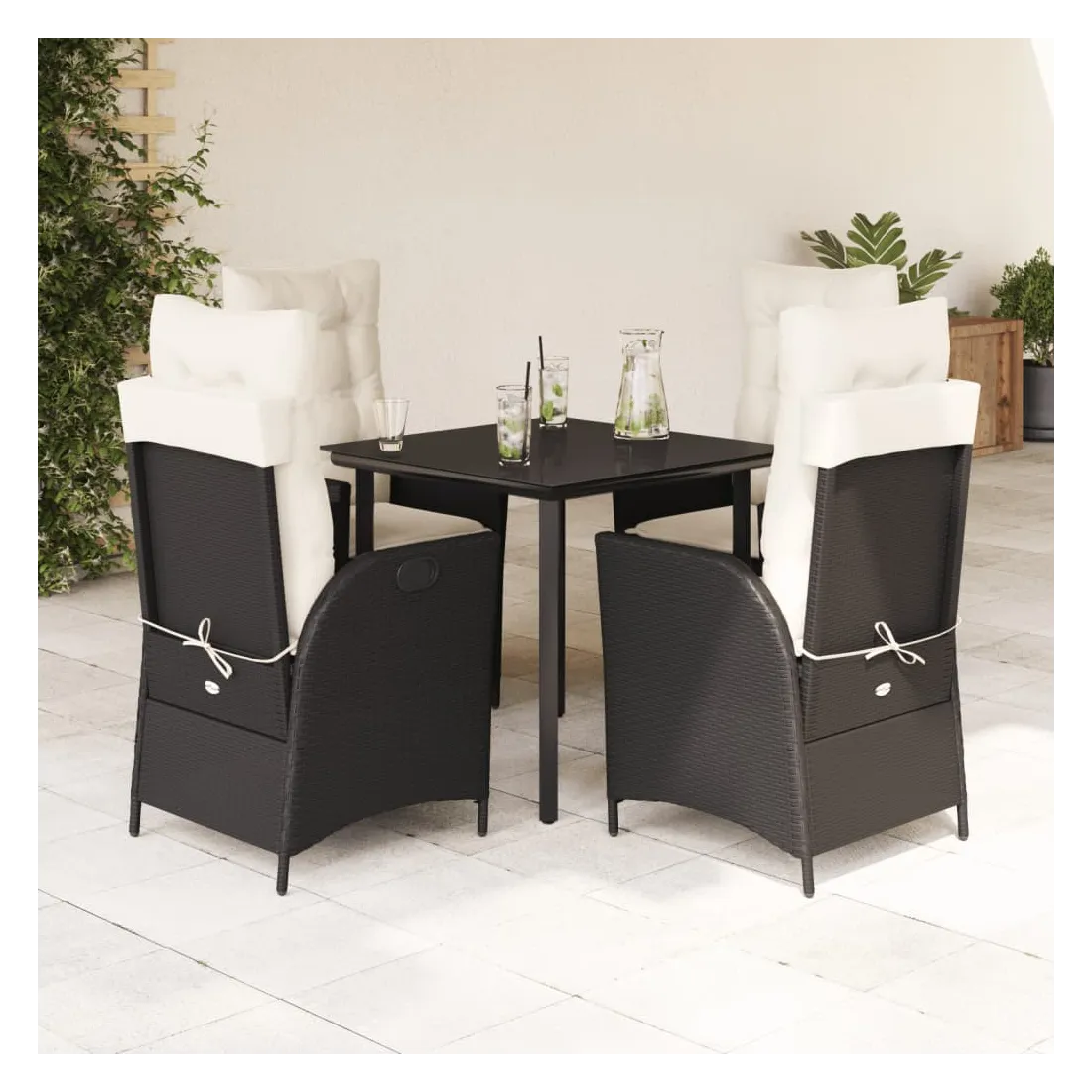 Cet ensemble de salle à manger de jardin est un excellent choix pour les repas en plein air ou pour vous détendre dans le jardin, dans l'arrière-cour ou sur la terrasse. Matériau durable : la résine tressée, également connue sous le nom de poly rotin, est un matériau synthétique solide et nécessitant peu d'entretien qui ressemble au rotin naturel. Il est léger, facile à nettoyer et couramment utilisé pour les meubles d'extérieur en raison de sa durabilité et de ses propriétés de résistance aux intempéries.Dossier réglable : ce siège de jardin est doté d'une poignée. Vous pouvez régler le dossier dans n'importe quelle position en tirant sur la poignée et le remettre rapidement dans sa position initiale.Expérience d'assise confortable : ce mobilier d'extérieur, doté de coussins épais, offre une expérience d'assise confortable.Housse amovible et lavable : ces coussins de siège sont dotés de housses amovibles pour un lavage et un entretien faciles. Les coussins de dossier ont un rabat à l'arrière pour une fixation facile aux dossiers.Dessus en verre : le dessus de la table d'extérieur est fabriqué en verre trempé solide et durable, ce qui le rend facile à nettoyer avec un chiffon humide et ajoute une touche d'élégance à votre espace extérieur. Bon à savoir : Pour que vos meubles d'extérieur restent beaux, nous vous recommandons de les protéger avec une housse imperméable.