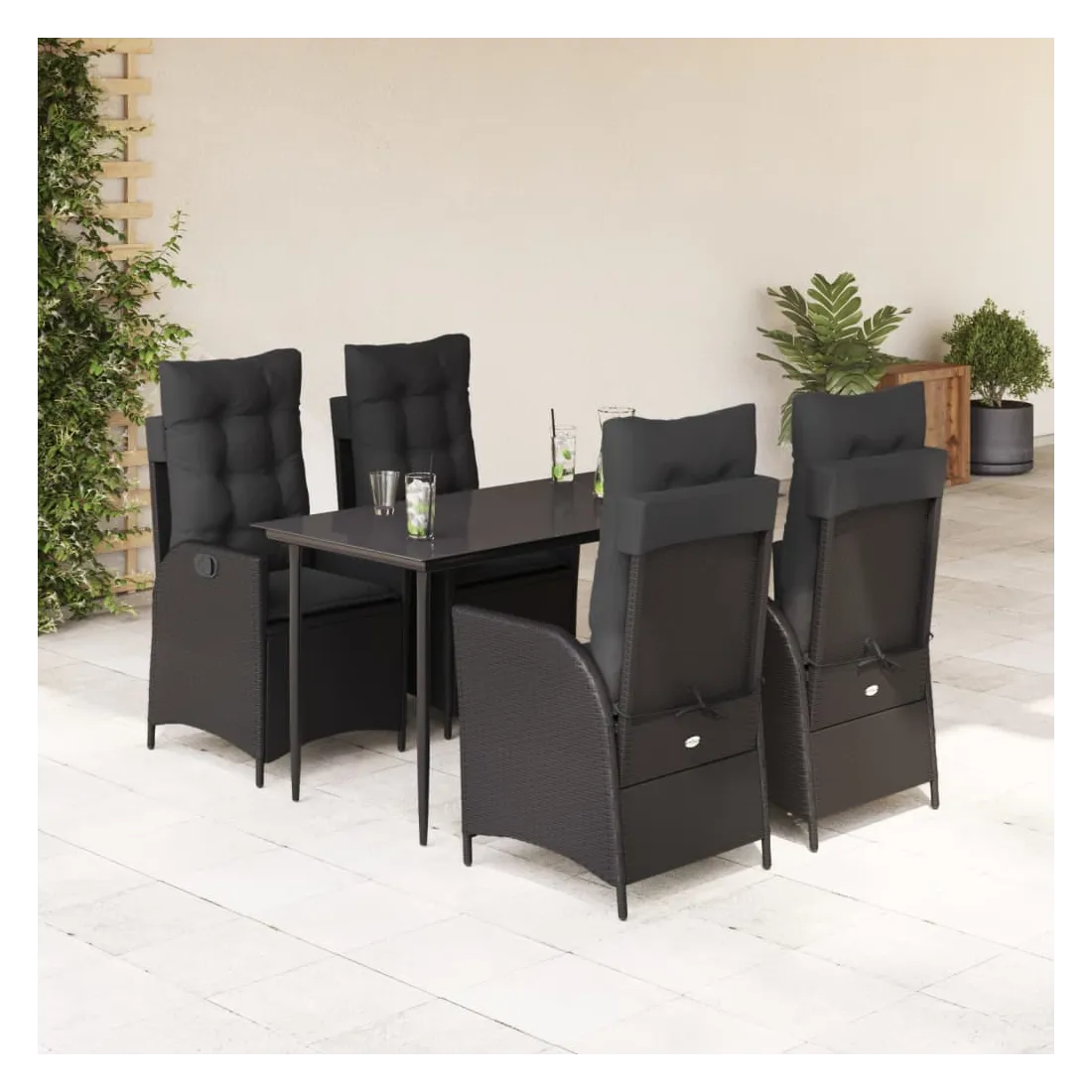 Cet ensemble de salle à manger de jardin est un excellent choix pour les repas en plein air ou pour vous détendre dans le jardin, dans l'arrière-cour ou sur la terrasse. Matériau durable : la résine tressée, également connue sous le nom de poly rotin, est un matériau synthétique solide et nécessitant peu d'entretien qui ressemble au rotin naturel. Il est léger, facile à nettoyer et couramment utilisé pour les meubles d'extérieur en raison de sa durabilité et de ses propriétés de résistance aux intempéries.Dossier réglable : ce siège de jardin est doté d'une poignée. Vous pouvez régler le dossier dans n'importe quelle position en tirant sur la poignée et le remettre rapidement dans sa position initiale.Expérience d'assise confortable : ce mobilier d'extérieur, doté de coussins épais, offre une expérience d'assise confortable.Housse amovible et lavable : ces coussins de siège sont dotés de housses amovibles pour un lavage et un entretien faciles. Les coussins de dossier ont un rabat à l'arrière pour une fixation facile aux dossiers.Dessus en verre : le dessus de la table d'extérieur est fabriqué en verre trempé solide et durable, ce qui le rend facile à nettoyer avec un chiffon humide et ajoute une touche d'élégance à votre espace extérieur. Bon à savoir : Pour que vos meubles d'extérieur restent beaux, nous vous recommandons de les protéger avec une housse imperméable.
