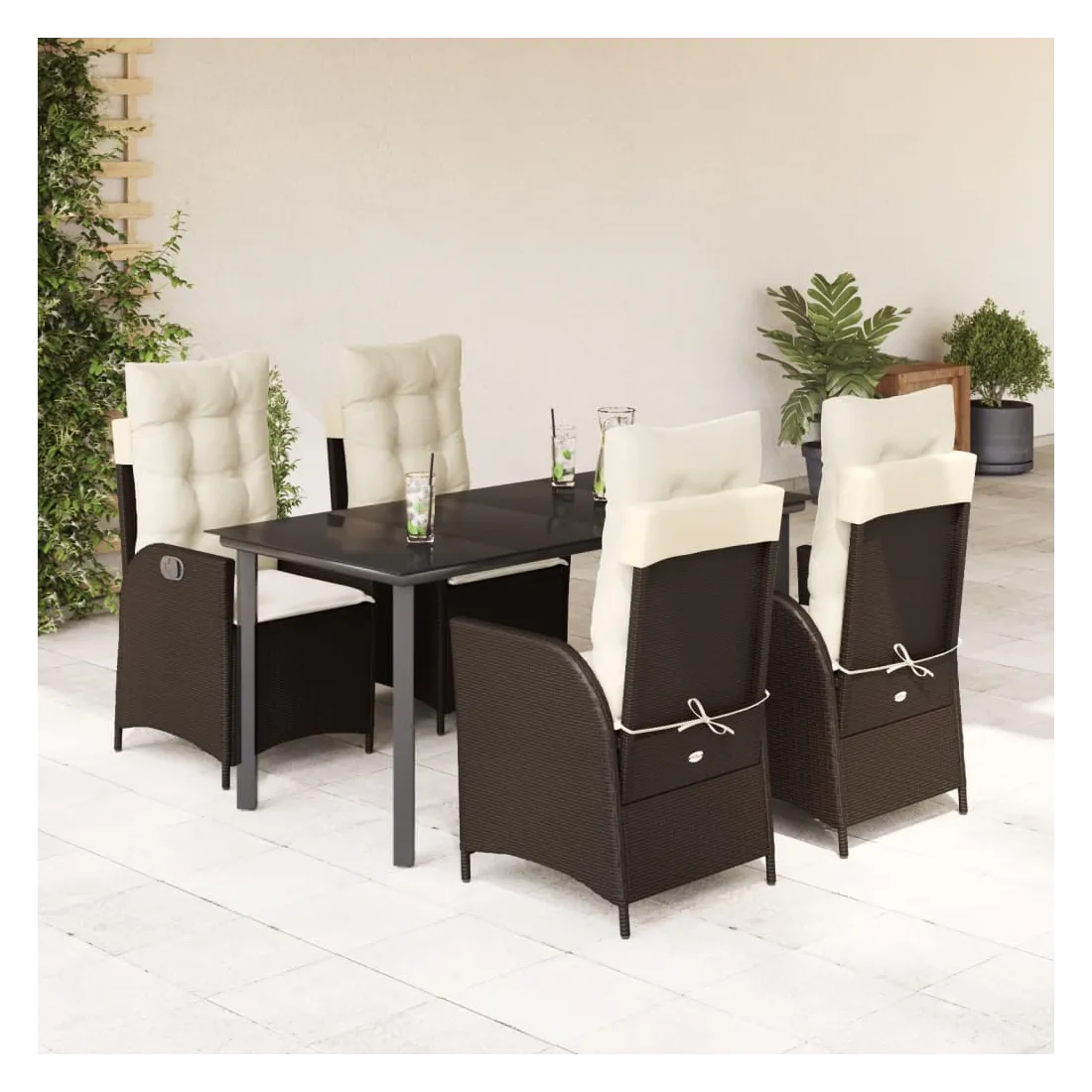 Cet ensemble de salle à manger de jardin est un excellent choix pour les repas en plein air ou pour vous détendre dans le jardin, dans l'arrière-cour ou sur la terrasse. Matériau durable : la résine tressée, également connue sous le nom de poly rotin, est un matériau synthétique solide et nécessitant peu d'entretien qui ressemble au rotin naturel. Il est léger, facile à nettoyer et couramment utilisé pour les meubles d'extérieur en raison de sa durabilité et de ses propriétés de résistance aux intempéries.Dossier réglable : ce siège de jardin est doté d'une poignée. Vous pouvez régler le dossier dans n'importe quelle position en tirant sur la poignée et le remettre rapidement dans sa position initiale.Expérience d'assise confortable : ce mobilier d'extérieur, doté de coussins épais, offre une expérience d'assise confortable.Housse amovible et lavable : ces coussins de siège sont dotés de housses amovibles pour un lavage et un entretien faciles. Les coussins de dossier ont un rabat à l'arrière pour une fixation facile aux dossiers.Dessus en verre : le dessus de la table d'extérieur est fabriqué en verre trempé solide et durable, ce qui le rend facile à nettoyer avec un chiffon humide et ajoute une touche d'élégance à votre espace extérieur. Bon à savoir : Pour que vos meubles d'extérieur restent beaux, nous vous recommandons de les protéger avec une housse imperméable.