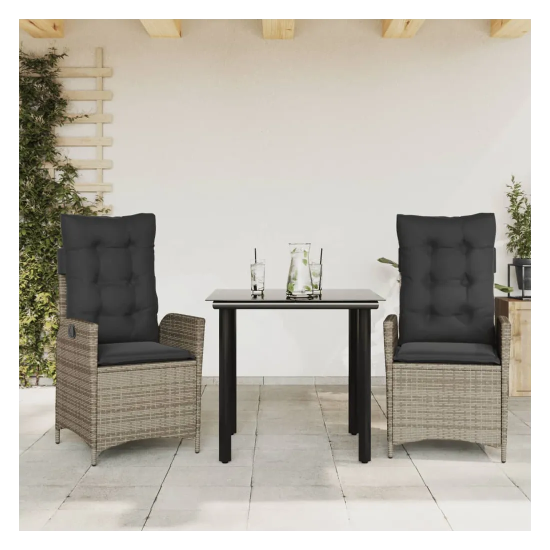 Cet ensemble de salle à manger de jardin est un excellent choix pour les repas en plein air ou pour vous détendre dans le jardin, dans l'arrière-cour ou sur la terrasse. Matériau durable : la résine tressée, également connue sous le nom de poly rotin, est un matériau synthétique solide et nécessitant peu d'entretien qui ressemble au rotin naturel. Il est léger, facile à nettoyer et couramment utilisé pour les meubles d'extérieur en raison de sa durabilité et de ses propriétés de résistance aux intempéries.Dossier réglable : ce siège de jardin est doté d'une poignée. Vous pouvez régler le dossier dans n'importe quelle position en tirant sur la poignée et le remettre rapidement dans sa position initiale.Expérience d'assise confortable : ce mobilier d'extérieur, doté de coussins épais, offre une expérience d'assise confortable.Housse amovible et lavable : ces coussins de siège sont dotés de housses amovibles pour un lavage et un entretien faciles. Les coussins de dossier ont un rabat à l'arrière pour une fixation facile aux dossiers.Dessus en verre : le dessus de la table d'extérieur est fabriqué en verre trempé solide et durable, ce qui le rend facile à nettoyer avec un chiffon humide et ajoute une touche d'élégance à votre espace extérieur. Bon à savoir : Pour que vos meubles d'extérieur restent beaux, nous vous recommandons de les protéger avec une housse imperméable.