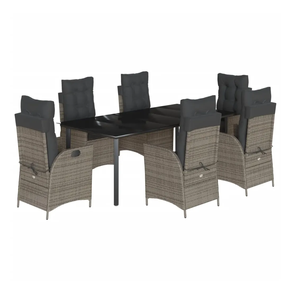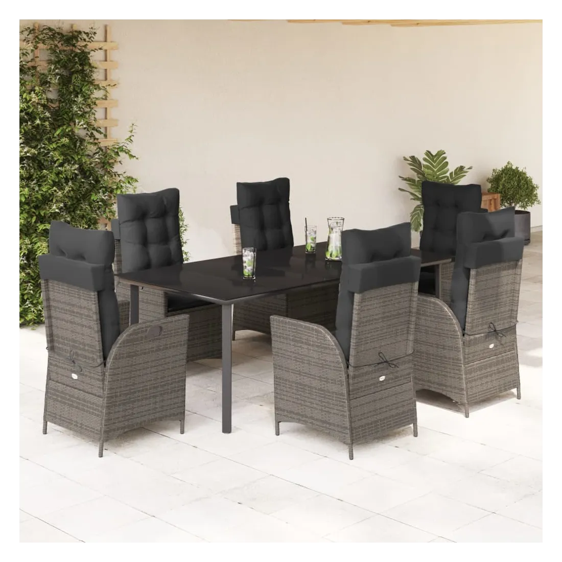 Cet ensemble de salle à manger de jardin est un excellent choix pour les repas en plein air ou pour vous détendre dans le jardin, dans l'arrière-cour ou sur la terrasse. Matériau durable : la résine tressée, également connue sous le nom de poly rotin, est un matériau synthétique solide et nécessitant peu d'entretien qui ressemble au rotin naturel. Il est léger, facile à nettoyer et couramment utilisé pour les meubles d'extérieur en raison de sa durabilité et de ses propriétés de résistance aux intempéries.Dossier réglable : ce siège de jardin est doté d'une poignée. Vous pouvez régler le dossier dans n'importe quelle position en tirant sur la poignée et le remettre rapidement dans sa position initiale.Expérience d'assise confortable : ce mobilier d'extérieur, doté de coussins épais, offre une expérience d'assise confortable.Housse amovible et lavable : ces coussins de siège sont dotés de housses amovibles pour un lavage et un entretien faciles. Les coussins de dossier ont un rabat à l'arrière pour une fixation facile aux dossiers.Dessus en verre : le dessus de la table d'extérieur est fabriqué en verre trempé solide et durable, ce qui le rend facile à nettoyer avec un chiffon humide et ajoute une touche d'élégance à votre espace extérieur. Bon à savoir : Pour que vos meubles d'extérieur restent beaux, nous vous recommandons de les protéger avec une housse imperméable.