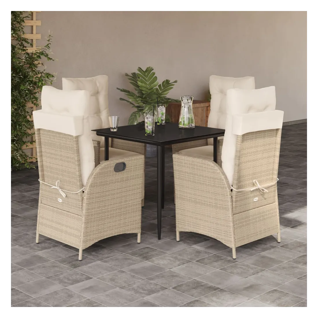 Cet ensemble de salle à manger de jardin est un excellent choix pour les repas en plein air ou pour vous détendre dans le jardin, dans l'arrière-cour ou sur la terrasse. Matériau durable : la résine tressée, également connue sous le nom de poly rotin, est un matériau synthétique solide et nécessitant peu d'entretien qui ressemble au rotin naturel. Il est léger, facile à nettoyer et couramment utilisé pour les meubles d'extérieur en raison de sa durabilité et de ses propriétés de résistance aux intempéries.Dossier réglable : ce siège de jardin est doté d'une poignée. Vous pouvez régler le dossier dans n'importe quelle position en tirant sur la poignée et le remettre rapidement dans sa position initiale.Expérience d'assise confortable : ce mobilier d'extérieur, doté de coussins épais, offre une expérience d'assise confortable.Housse amovible et lavable : ces coussins de siège sont dotés de housses amovibles pour un lavage et un entretien faciles. Les coussins de dossier ont un rabat à l'arrière pour une fixation facile aux dossiers.Dessus en verre : le dessus de la table d'extérieur est fabriqué en verre trempé solide et durable, ce qui le rend facile à nettoyer avec un chiffon humide et ajoute une touche d'élégance à votre espace extérieur. Bon à savoir : Pour que vos meubles d'extérieur restent beaux, nous vous recommandons de les protéger avec une housse imperméable.