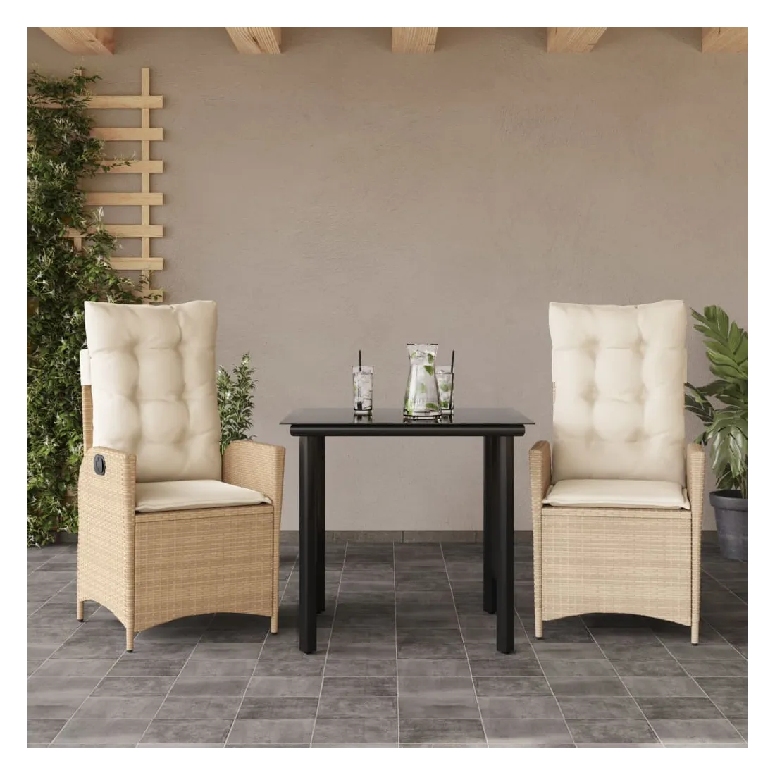 Cet ensemble de salle à manger de jardin est un excellent choix pour les repas en plein air ou pour vous détendre dans le jardin, dans l'arrière-cour ou sur la terrasse. Matériau durable : la résine tressée, également connue sous le nom de poly rotin, est un matériau synthétique solide et nécessitant peu d'entretien qui ressemble au rotin naturel. Il est léger, facile à nettoyer et couramment utilisé pour les meubles d'extérieur en raison de sa durabilité et de ses propriétés de résistance aux intempéries.Dossier réglable : ce siège de jardin est doté d'une poignée. Vous pouvez régler le dossier dans n'importe quelle position en tirant sur la poignée et le remettre rapidement dans sa position initiale.Expérience d'assise confortable : ce mobilier d'extérieur, doté de coussins épais, offre une expérience d'assise confortable.Housse amovible et lavable : ces coussins de siège sont dotés de housses amovibles pour un lavage et un entretien faciles. Les coussins de dossier ont un rabat à l'arrière pour une fixation facile aux dossiers.Dessus en verre : le dessus de la table d'extérieur est fabriqué en verre trempé solide et durable, ce qui le rend facile à nettoyer avec un chiffon humide et ajoute une touche d'élégance à votre espace extérieur. Bon à savoir : Pour que vos meubles d'extérieur restent beaux, nous vous recommandons de les protéger avec une housse imperméable.