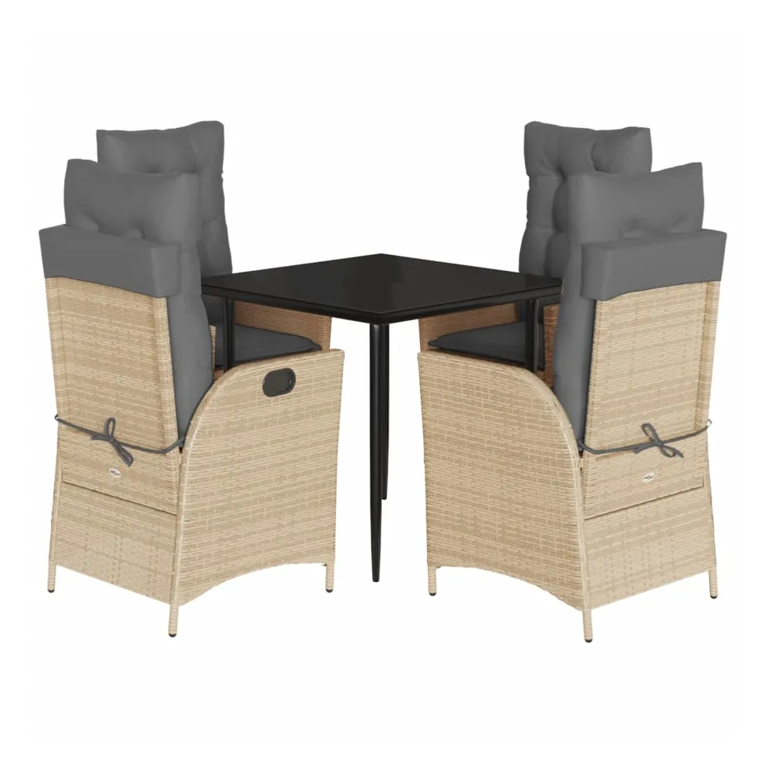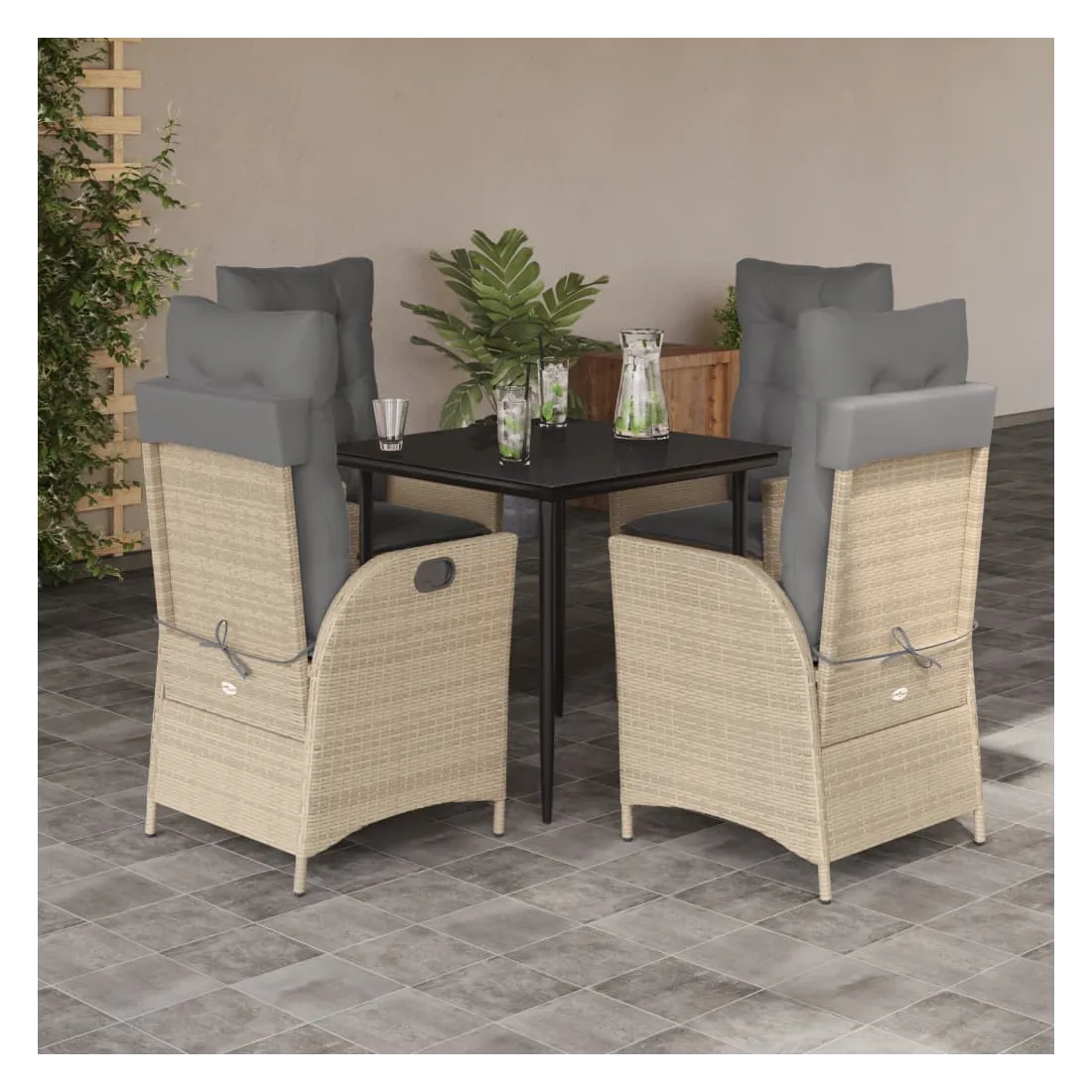 Cet ensemble de salle à manger de jardin est un excellent choix pour les repas en plein air ou pour vous détendre dans le jardin, dans l'arrière-cour ou sur la terrasse. Matériau durable : la résine tressée, également connue sous le nom de poly rotin, est un matériau synthétique solide et nécessitant peu d'entretien qui ressemble au rotin naturel. Il est léger, facile à nettoyer et couramment utilisé pour les meubles d'extérieur en raison de sa durabilité et de ses propriétés de résistance aux intempéries.Dossier réglable : ce siège de jardin est doté d'une poignée. Vous pouvez régler le dossier dans n'importe quelle position en tirant sur la poignée et le remettre rapidement dans sa position initiale.Expérience d'assise confortable : ce mobilier d'extérieur, doté de coussins épais, offre une expérience d'assise confortable.Housse amovible et lavable : ces coussins de siège sont dotés de housses amovibles pour un lavage et un entretien faciles. Les coussins de dossier ont un rabat à l'arrière pour une fixation facile aux dossiers.Dessus en verre : le dessus de la table d'extérieur est fabriqué en verre trempé solide et durable, ce qui le rend facile à nettoyer avec un chiffon humide et ajoute une touche d'élégance à votre espace extérieur. Bon à savoir : Pour que vos meubles d'extérieur restent beaux, nous vous recommandons de les protéger avec une housse imperméable.