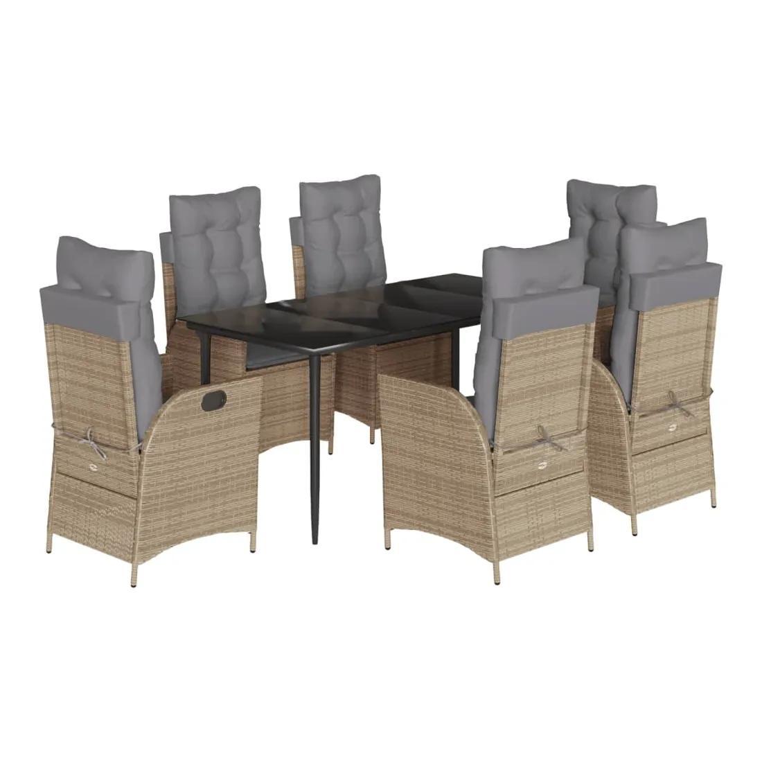 Cet ensemble de salle à manger de jardin est un excellent choix pour les repas en plein air ou pour vous détendre dans le jardin, dans l'arrière-cour ou sur la terrasse. Matériau durable : la résine tressée, également connue sous le nom de poly rotin, est un matériau synthétique solide et nécessitant peu d'entretien qui ressemble au rotin naturel. Il est léger, facile à nettoyer et couramment utilisé pour les meubles d'extérieur en raison de sa durabilité et de ses propriétés de résistance aux intempéries.Dossier réglable : ce siège de jardin est doté d'une poignée. Vous pouvez régler le dossier dans n'importe quelle position en tirant sur la poignée et le remettre rapidement dans sa position initiale.Expérience d'assise confortable : ce mobilier d'extérieur, doté de coussins épais, offre une expérience d'assise confortable.Housse amovible et lavable : ces coussins de siège sont dotés de housses amovibles pour un lavage et un entretien faciles. Les coussins de dossier ont un rabat à l'arrière pour une fixation facile aux dossiers.Dessus en verre : le dessus de la table d'extérieur est fabriqué en verre trempé solide et durable, ce qui le rend facile à nettoyer avec un chiffon humide et ajoute une touche d'élégance à votre espace extérieur. Bon à savoir : Pour que vos meubles d'extérieur restent beaux, nous vous recommandons de les protéger avec une housse imperméable.