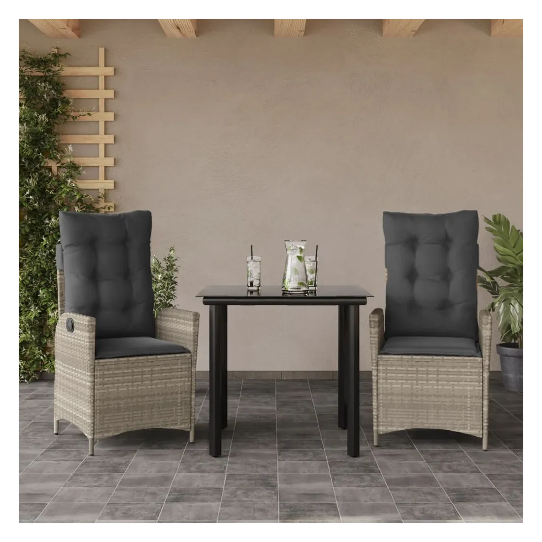 Cet ensemble de salle à manger de jardin est un excellent choix pour les repas en plein air ou pour vous détendre dans le jardin, dans l'arrière-cour ou sur la terrasse. Matériau durable : la résine tressée, également connue sous le nom de poly rotin, est un matériau synthétique solide et nécessitant peu d'entretien qui ressemble au rotin naturel. Il est léger, facile à nettoyer et couramment utilisé pour les meubles d'extérieur en raison de sa durabilité et de ses propriétés de résistance aux intempéries.Dossier réglable : ce siège de jardin est doté d'une poignée. Vous pouvez régler le dossier dans n'importe quelle position en tirant sur la poignée et le remettre rapidement dans sa position initiale.Expérience d'assise confortable : ce mobilier d'extérieur, doté de coussins épais, offre une expérience d'assise confortable.Housse amovible et lavable : ces coussins de siège sont dotés de housses amovibles pour un lavage et un entretien faciles. Les coussins de dossier ont un rabat à l'arrière pour une fixation facile aux dossiers.Dessus en verre : le dessus de la table d'extérieur est fabriqué en verre trempé solide et durable, ce qui le rend facile à nettoyer avec un chiffon humide et ajoute une touche d'élégance à votre espace extérieur. Bon à savoir : Pour que vos meubles d'extérieur restent beaux, nous vous recommandons de les protéger avec une housse imperméable.