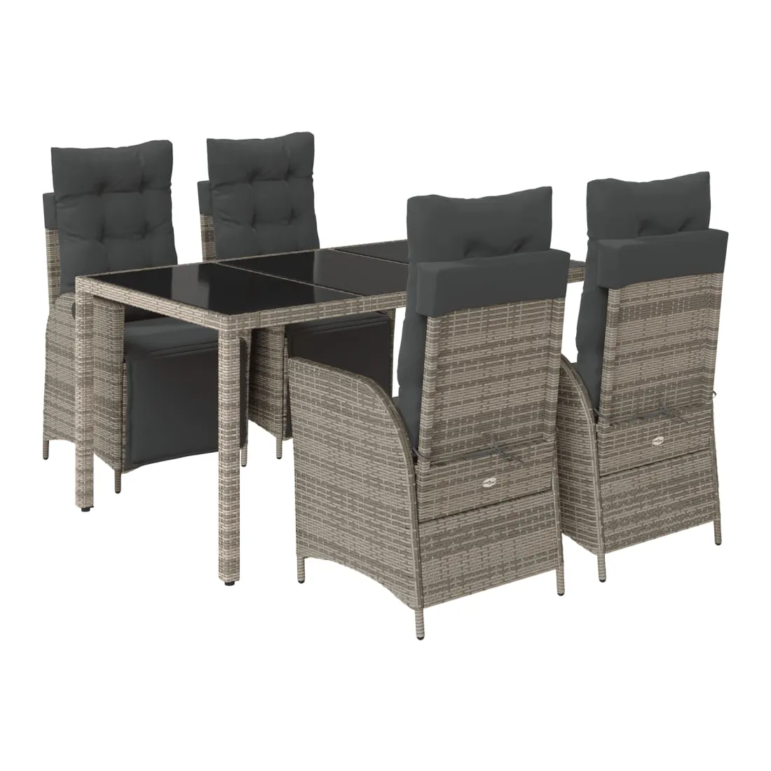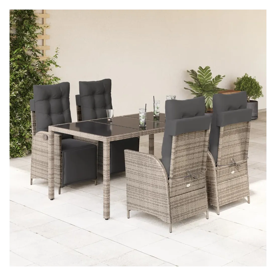 Cet ensemble de salle à manger de jardin est un excellent choix pour les repas en plein air ou pour vous détendre dans le jardin, l'arrière-cour ou le patio. Matériau durable : la résine tressée, également connue sous le nom de poly rotin, est un matériau synthétique solide et nécessitant peu d'entretien qui ressemble au rotin naturel. Il est léger, facile à nettoyer et couramment utilisé pour les meubles d'extérieur en raison de sa durabilité et de ses propriétés de résistance aux intempéries.Dossier et repose-pied réglables : ce siège de jardin est doté d'une poignée. Vous pouvez régler le dossier et le repose-pied dans n'importe quelle position en tirant sur la poignée, et les remettre rapidement dans leur position initiale.Expérience d'assise confortable : ce mobilier d'extérieur, doté de coussins épais, offre une expérience d'assise confortable.Housse amovible et lavable : ces coussins de siège sont dotés de housses amovibles pour un lavage et un entretien faciles. Les coussins de dossier ont un rabat à l'arrière pour une fixation facile aux dossiers.Dessus en verre : le dessus de la table d'extérieur est fabriqué en verre trempé solide et durable, ce qui le rend facile à nettoyer avec un chiffon humide et ajoute une touche d'élégance à votre espace extérieur. Bon à savoir :Pour que vos meubles d'extérieur restent beaux, nous vous recommandons de les protéger avec une housse imperméable.