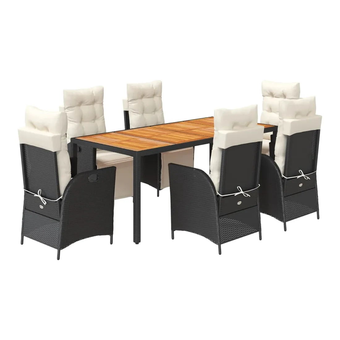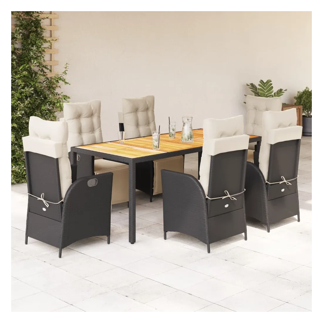 Cet ensemble de salle à manger de jardin est un excellent choix pour les repas en plein air ou pour vous détendre dans le jardin, l'arrière-cour ou le patio. Matériau durable : la résine tressée, également connue sous le nom de poly rotin, est un matériau synthétique solide et nécessitant peu d'entretien qui ressemble au rotin naturel. Il est léger, facile à nettoyer et couramment utilisé pour les meubles d'extérieur en raison de sa durabilité et de ses propriétés de résistance aux intempéries.Dossier et repose-pied réglables : ce siège de jardin est doté d'une poignée. Vous pouvez régler le dossier et le repose-pied dans n'importe quelle position en tirant sur la poignée, et les remettre rapidement dans leur position initiale.Expérience d'assise confortable : ce mobilier d'extérieur, doté de coussins épais, offre une expérience d'assise confortable.Housse amovible et lavable : ces coussins de siège sont dotés de housses amovibles pour un lavage et un entretien faciles. Les coussins de dossier ont un rabat à l'arrière pour une fixation facile aux dossiers.Dessus stable et facile à nettoyer : cette table de jardin a un dessus en bois d'acacia robuste, durable et facile à nettoyer avec un chiffon humide. Bon à savoir :Pour que vos meubles d'extérieur restent beaux, nous vous recommandons de les protéger avec une housse imperméable.
