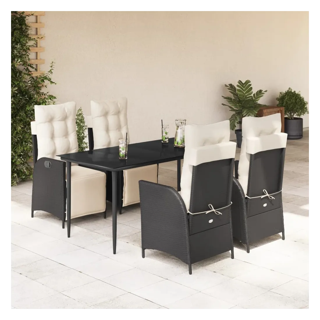 Cet ensemble de salle à manger de jardin est un excellent choix pour les repas en plein air ou pour vous détendre dans le jardin, l'arrière-cour ou le patio. Matériau durable : la résine tressée, également connue sous le nom de poly rotin, est un matériau synthétique solide et nécessitant peu d'entretien qui ressemble au rotin naturel. Il est léger, facile à nettoyer et couramment utilisé pour les meubles d'extérieur en raison de sa durabilité et de ses propriétés de résistance aux intempéries.Dossier et repose-pied réglables : ce siège de jardin est doté d'une poignée. Vous pouvez régler le dossier et le repose-pied dans n'importe quelle position en tirant sur la poignée, et les remettre rapidement dans leur position initiale.Expérience d'assise confortable : ce mobilier d'extérieur, doté de coussins épais, offre une expérience d'assise confortable.Housse amovible et lavable : ces coussins de siège sont dotés de housses amovibles pour un lavage et un entretien faciles. Les coussins de dossier ont un rabat à l'arrière pour une fixation facile aux dossiers.Dessus en verre : le dessus de la table d'extérieur est fabriqué en verre trempé solide et durable, ce qui le rend facile à nettoyer avec un chiffon humide et ajoute une touche d'élégance à votre espace extérieur. Bon à savoir :Pour que vos meubles d'extérieur restent beaux, nous vous recommandons de les protéger avec une housse imperméable.