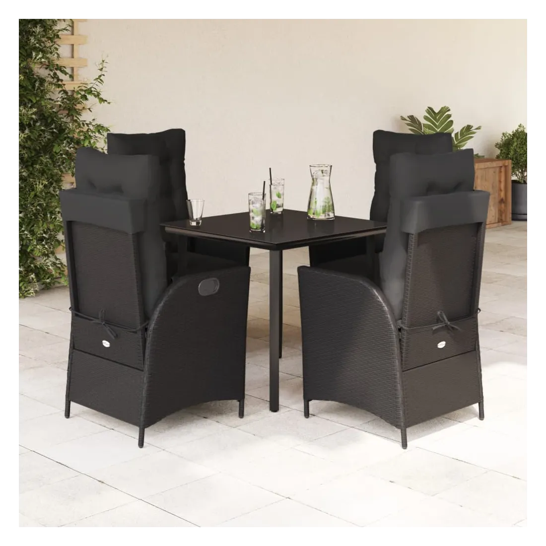 Cet ensemble de salle à manger de jardin est un excellent choix pour les repas en plein air ou pour vous détendre dans le jardin, l'arrière-cour ou le patio. Matériau durable : la résine tressée, également connue sous le nom de poly rotin, est un matériau synthétique solide et nécessitant peu d'entretien qui ressemble au rotin naturel. Il est léger, facile à nettoyer et couramment utilisé pour les meubles d'extérieur en raison de sa durabilité et de ses propriétés de résistance aux intempéries.Dossier et repose-pied réglables : ce siège de jardin est doté d'une poignée. Vous pouvez régler le dossier et le repose-pied dans n'importe quelle position en tirant sur la poignée, et les remettre rapidement dans leur position initiale.Expérience d'assise confortable : ce mobilier d'extérieur, doté de coussins épais, offre une expérience d'assise confortable.Housse amovible et lavable : ces coussins de siège sont dotés de housses amovibles pour un lavage et un entretien faciles. Les coussins de dossier ont un rabat à l'arrière pour une fixation facile aux dossiers.Dessus en verre : le dessus de la table d'extérieur est fabriqué en verre trempé solide et durable, ce qui le rend facile à nettoyer avec un chiffon humide et ajoute une touche d'élégance à votre espace extérieur. Bon à savoir :Pour que vos meubles d'extérieur restent beaux, nous vous recommandons de les protéger avec une housse imperméable.