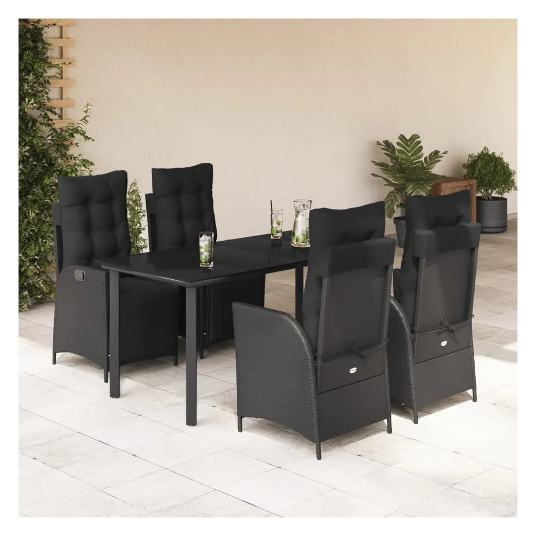 Cet ensemble de salle à manger de jardin est un excellent choix pour les repas en plein air ou pour vous détendre dans le jardin, l'arrière-cour ou le patio. Matériau durable : la résine tressée, également connue sous le nom de poly rotin, est un matériau synthétique solide et nécessitant peu d'entretien qui ressemble au rotin naturel. Il est léger, facile à nettoyer et couramment utilisé pour les meubles d'extérieur en raison de sa durabilité et de ses propriétés de résistance aux intempéries.Dossier et repose-pied réglables : ce siège de jardin est doté d'une poignée. Vous pouvez régler le dossier et le repose-pied dans n'importe quelle position en tirant sur la poignée, et les remettre rapidement dans leur position initiale.Expérience d'assise confortable : ce mobilier d'extérieur, doté de coussins épais, offre une expérience d'assise confortable.Housse amovible et lavable : ces coussins de siège sont dotés de housses amovibles pour un lavage et un entretien faciles. Les coussins de dossier ont un rabat à l'arrière pour une fixation facile aux dossiers.Dessus en verre : le dessus de la table d'extérieur est fabriqué en verre trempé solide et durable, ce qui le rend facile à nettoyer avec un chiffon humide et ajoute une touche d'élégance à votre espace extérieur. Bon à savoir :Pour que vos meubles d'extérieur restent beaux, nous vous recommandons de les protéger avec une housse imperméable.