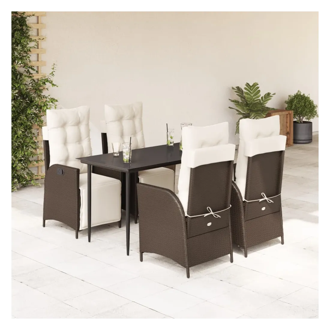 Cet ensemble de salle à manger de jardin est un excellent choix pour les repas en plein air ou pour vous détendre dans le jardin, l'arrière-cour ou le patio. Matériau durable : la résine tressée, également connue sous le nom de poly rotin, est un matériau synthétique solide et nécessitant peu d'entretien qui ressemble au rotin naturel. Il est léger, facile à nettoyer et couramment utilisé pour les meubles d'extérieur en raison de sa durabilité et de ses propriétés de résistance aux intempéries.Dossier et repose-pied réglables : ce siège de jardin est doté d'une poignée. Vous pouvez régler le dossier et le repose-pied dans n'importe quelle position en tirant sur la poignée, et les remettre rapidement dans leur position initiale.Expérience d'assise confortable : ce mobilier d'extérieur, doté de coussins épais, offre une expérience d'assise confortable.Housse amovible et lavable : ces coussins de siège sont dotés de housses amovibles pour un lavage et un entretien faciles. Les coussins de dossier ont un rabat à l'arrière pour une fixation facile aux dossiers.Dessus en verre : le dessus de la table d'extérieur est fabriqué en verre trempé solide et durable, ce qui le rend facile à nettoyer avec un chiffon humide et ajoute une touche d'élégance à votre espace extérieur. Bon à savoir :Pour que vos meubles d'extérieur restent beaux, nous vous recommandons de les protéger avec une housse imperméable.