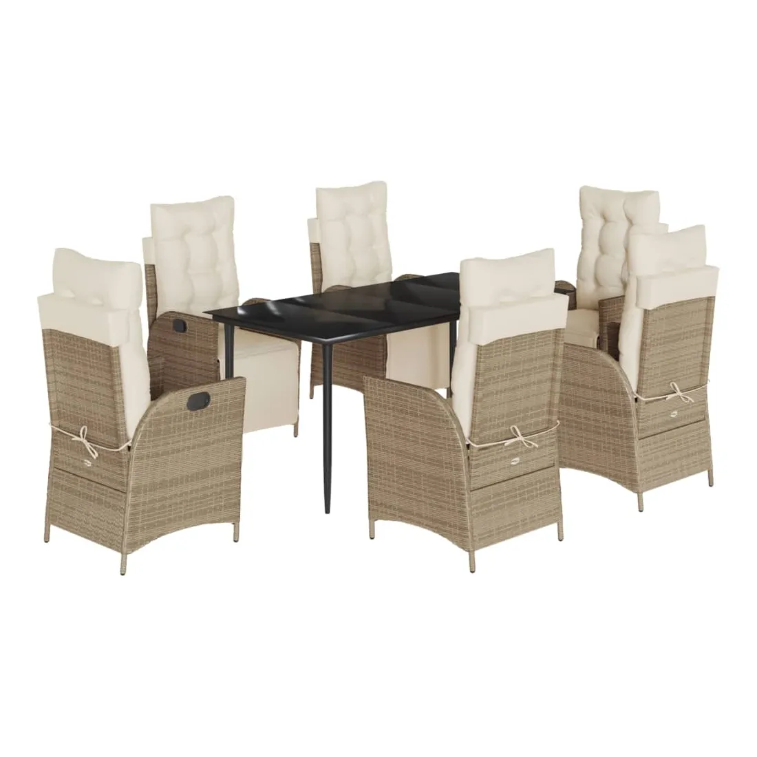 Cet ensemble de salle à manger de jardin est un excellent choix pour les repas en plein air ou pour vous détendre dans le jardin, l'arrière-cour ou le patio. Matériau durable : la résine tressée, également connue sous le nom de poly rotin, est un matériau synthétique solide et nécessitant peu d'entretien qui ressemble au rotin naturel. Il est léger, facile à nettoyer et couramment utilisé pour les meubles d'extérieur en raison de sa durabilité et de ses propriétés de résistance aux intempéries.Dossier et repose-pied réglables : ce siège de jardin est doté d'une poignée. Vous pouvez régler le dossier et le repose-pied dans n'importe quelle position en tirant sur la poignée, et les remettre rapidement dans leur position initiale.Expérience d'assise confortable : ce mobilier d'extérieur, doté de coussins épais, offre une expérience d'assise confortable.Housse amovible et lavable : ces coussins de siège sont dotés de housses amovibles pour un lavage et un entretien faciles. Les coussins de dossier ont un rabat à l'arrière pour une fixation facile aux dossiers.Dessus en verre : le dessus de la table d'extérieur est fabriqué en verre trempé solide et durable, ce qui le rend facile à nettoyer avec un chiffon humide et ajoute une touche d'élégance à votre espace extérieur. Bon à savoir :Pour que vos meubles d'extérieur restent beaux, nous vous recommandons de les protéger avec une housse imperméable.