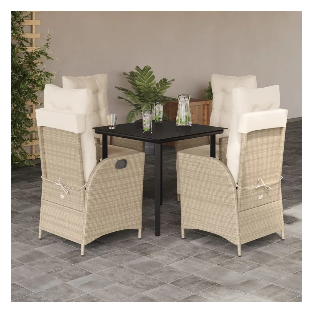Cet ensemble de salle à manger de jardin est un excellent choix pour les repas en plein air ou pour vous détendre dans le jardin, l'arrière-cour ou le patio. Matériau durable : la résine tressée, également connue sous le nom de poly rotin, est un matériau synthétique solide et nécessitant peu d'entretien qui ressemble au rotin naturel. Il est léger, facile à nettoyer et couramment utilisé pour les meubles d'extérieur en raison de sa durabilité et de ses propriétés de résistance aux intempéries.Dossier et repose-pied réglables : ce siège de jardin est doté d'une poignée. Vous pouvez régler le dossier et le repose-pied dans n'importe quelle position en tirant sur la poignée, et les remettre rapidement dans leur position initiale.Expérience d'assise confortable : ce mobilier d'extérieur, doté de coussins épais, offre une expérience d'assise confortable.Housse amovible et lavable : ces coussins de siège sont dotés de housses amovibles pour un lavage et un entretien faciles. Les coussins de dossier ont un rabat à l'arrière pour une fixation facile aux dossiers.Dessus en verre : le dessus de la table d'extérieur est fabriqué en verre trempé solide et durable, ce qui le rend facile à nettoyer avec un chiffon humide et ajoute une touche d'élégance à votre espace extérieur. Bon à savoir :Pour que vos meubles d'extérieur restent beaux, nous vous recommandons de les protéger avec une housse imperméable.