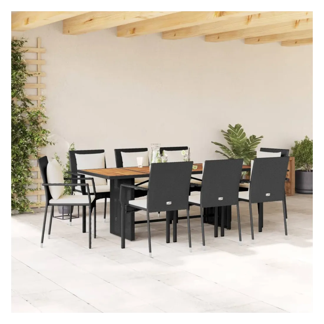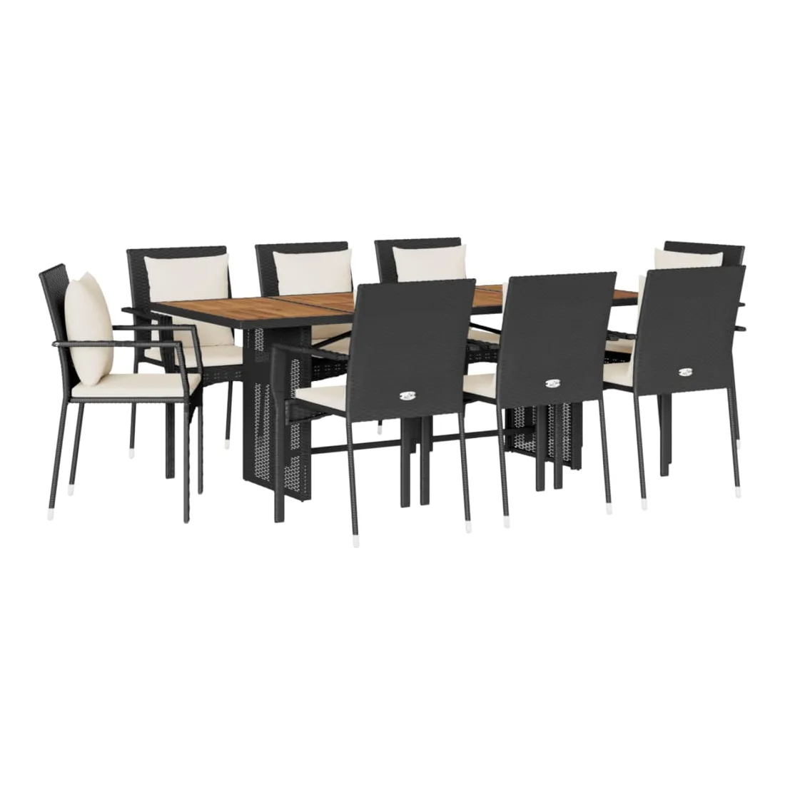 Cet ensemble de salle à manger de jardin est un excellent choix pour les repas en plein air ou pour vous détendre dans le jardin, l'arrière-cour ou le patio. Matériau durable : la résine tressée, également connue sous le nom de poly rotin, est un matériau synthétique solide et nécessitant peu d'entretien qui ressemble au rotin naturel. Il est léger, facile à nettoyer et couramment utilisé pour les meubles d'extérieur en raison de sa durabilité et de ses propriétés de résistance aux intempéries. Dessus stable et facile à nettoyer : cette table de jardin a un dessus en bois d'acacia robuste, durable et facile à nettoyer avec un chiffon humide. Expérience d'assise confortable : ce mobilier d'extérieur, doté de coussins épais, offre une expérience d'assise confortable. Cadre robuste et stable : le cadre en acier enduit de poudre assure la solidité et la stabilité du meuble de jardin pour une utilisation quotidienne à l'extérieur. Bon à savoir :Pour que vos meubles d'extérieur restent beaux, nous vous recommandons de les protéger avec une housse imperméable.