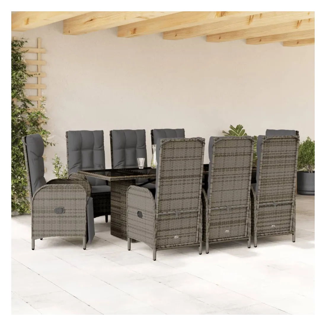 Cet ensemble de salle à manger de jardin est un excellent choix pour les repas en plein air ou pour vous détendre dans le jardin, l'arrière-cour ou le patio. Matériau durable : la résine tressée, également connue sous le nom de poly rotin, est un matériau synthétique solide et nécessitant peu d'entretien qui ressemble au rotin naturel. Il est léger, facile à nettoyer et couramment utilisé pour les meubles d'extérieur en raison de sa durabilité et de ses propriétés de résistance aux intempéries. Dossier réglable : ce siège de jardin est doté d'une poignée. Vous pouvez régler le dossier dans n'importe quelle position en tirant sur la poignée et le remettre rapidement dans sa position initiale.Dessus en verre : le dessus de la table d'extérieur est fabriqué en verre trempé solide et durable, ce qui le rend facile à nettoyer avec un chiffon humide et ajoute une touche d'élégance à votre espace extérieur. Expérience d'assise confortable : ce mobilier d'extérieur, doté de coussins épais, offre une expérience d'assise confortable. Housse amovible et lavable : ces coussins de siège sont dotés de housses amovibles pour un lavage et un entretien faciles. Bon à savoir :Pour que vos meubles d'extérieur restent beaux, nous vous recommandons de les protéger avec une housse imperméable.