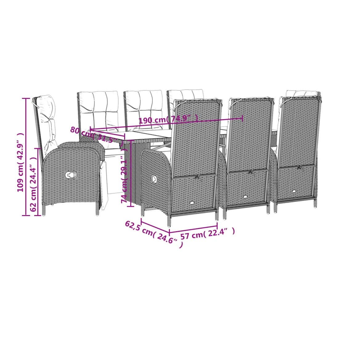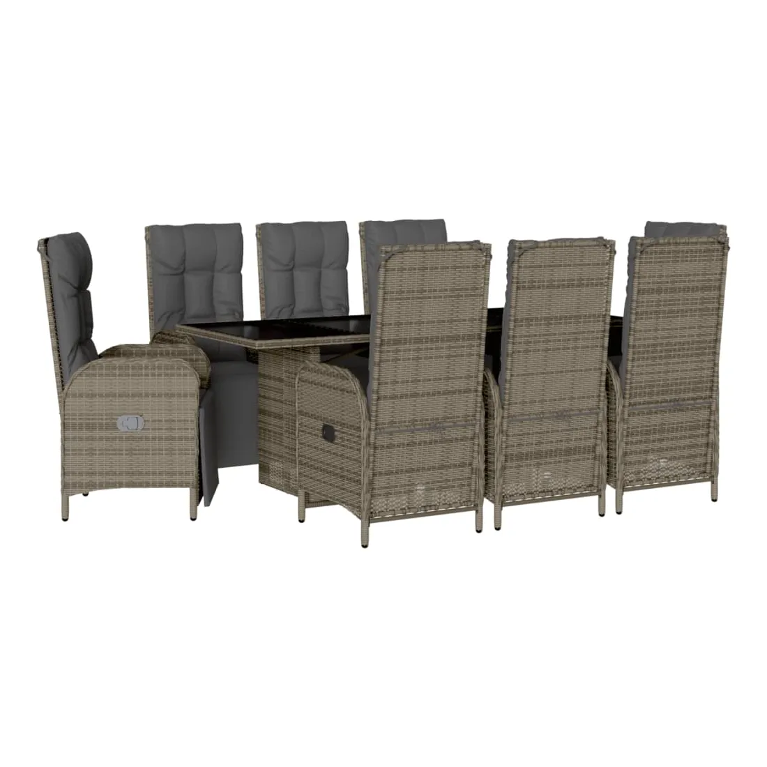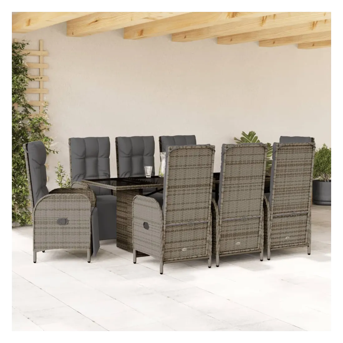 Cet ensemble de salle à manger de jardin est un excellent choix pour les repas en plein air ou pour vous détendre dans le jardin, l'arrière-cour ou le patio. Matériau durable : la résine tressée, également connue sous le nom de poly rotin, est un matériau synthétique solide et nécessitant peu d'entretien qui ressemble au rotin naturel. Il est léger, facile à nettoyer et couramment utilisé pour les meubles d'extérieur en raison de sa durabilité et de ses propriétés de résistance aux intempéries. Dossier réglable : ce siège de jardin est doté d'une poignée. Vous pouvez régler le dossier dans n'importe quelle position en tirant sur la poignée et le remettre rapidement dans sa position initiale.Dessus en verre : le dessus de la table d'extérieur est fabriqué en verre trempé solide et durable, ce qui le rend facile à nettoyer avec un chiffon humide et ajoute une touche d'élégance à votre espace extérieur. Expérience d'assise confortable : ce mobilier d'extérieur, doté de coussins épais, offre une expérience d'assise confortable. Housse amovible et lavable : ces coussins de siège sont dotés de housses amovibles pour un lavage et un entretien faciles. Bon à savoir :Pour que vos meubles d'extérieur restent beaux, nous vous recommandons de les protéger avec une housse imperméable.