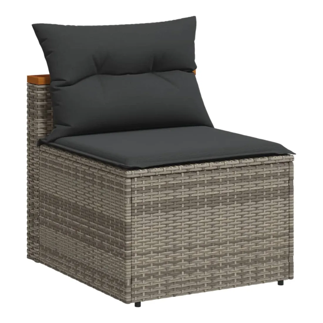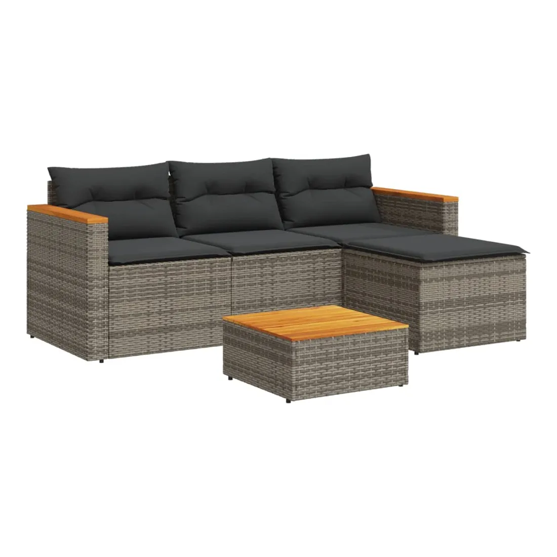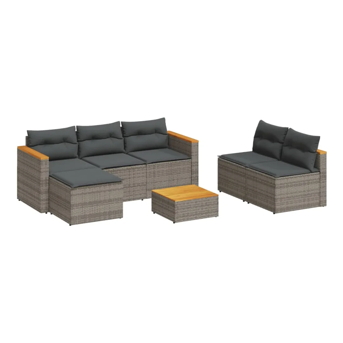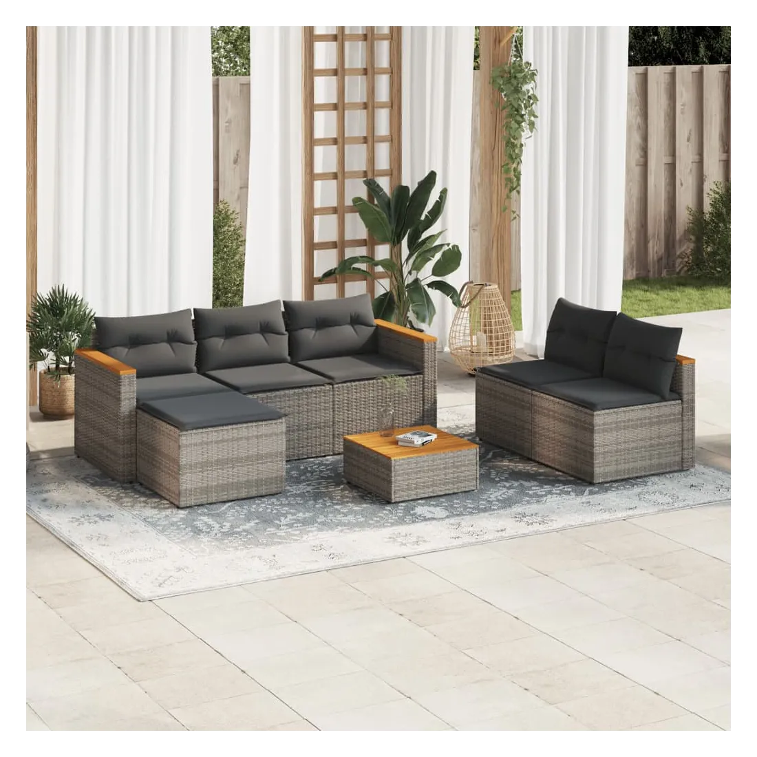 Cet ensemble de canapés de jardin est le complément parfait de votre arrière-cour, terrasse ou patio, offrant un espace confortable et accueillant pour discuter avec la famille et les amis ou simplement se détendre et profiter de l'extérieur. Matériau durable : la résine tressée, également connue sous le nom de poly rotin, est un matériau synthétique solide et nécessitant peu d'entretien qui ressemble au rotin naturel. Il est léger, facile à nettoyer et couramment utilisé pour les meubles d'extérieur en raison de sa durabilité et de ses propriétés de résistance aux intempéries.Dessus stable et facile à nettoyer : cette table de jardin a un dessus en bois d'acacia robuste, durable et facile à nettoyer avec un chiffon humide.Expérience d'assise confortable : ce mobilier d'extérieur, doté de coussins épais, offre une expérience d'assise confortable.Housse amovible et lavable : ces coussins de siège sont dotés de housses amovibles pour un lavage et un entretien faciles.Conception modulaire : cet ensemble de meubles d'extérieur a une conception modulaire, ce qui le rend complètement flexible et facile à déplacer, afin que vous puissiez créer un agencement de meubles d'extérieur personnalisé. Bon à savoir :Pour que vos meubles d'extérieur restent beaux, nous vous recommandons de les protéger avec une housse imperméable.