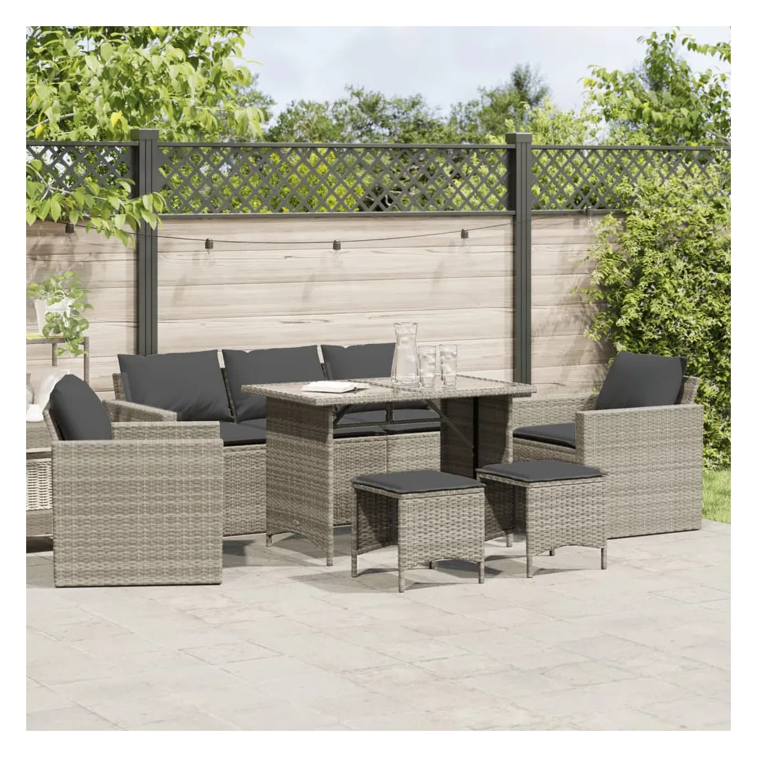 Cet ensemble de canapés de jardin est le complément parfait de votre arrière-cour, terrasse ou patio, offrant un espace confortable et accueillant pour discuter avec la famille et les amis ou simplement se détendre et profiter de l'extérieur. Matériau durable : la résine tressée, également connue sous le nom de poly rotin, est un matériau synthétique solide et nécessitant peu d'entretien qui ressemble au rotin naturel. Il est léger, facile à nettoyer et couramment utilisé pour les meubles d'extérieur en raison de sa durabilité et de ses propriétés de résistance aux intempéries.Expérience d'assise confortable : ce mobilier d'extérieur, doté de coussins épais, offre une expérience d'assise confortable.Housse amovible et lavable : ces coussins de siège sont dotés de housses amovibles pour un lavage et un entretien faciles.Dessus en verre : le dessus de la table d'extérieur est fabriqué en verre trempé solide et durable, ce qui le rend facile à nettoyer avec un chiffon humide et ajoute une touche d'élégance à votre espace extérieur.Cadre robuste et stable : le cadre en acier enduit de poudre assure la solidité et la stabilité du meuble de jardin pour une utilisation quotidienne à l'extérieur. Bon à savoir :Pour que vos meubles d'extérieur restent beaux, nous vous recommandons de les protéger avec une housse imperméable.