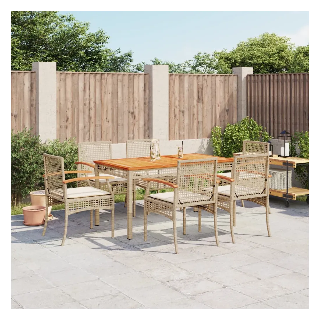 Cet ensemble de salle à manger de jardin est un excellent choix pour les repas en plein air ou pour vous détendre dans le jardin, dans l'arrière-cour ou sur la terrasse. Matériau durable : la résine tressée, également connue sous le nom de poly rotin, est un matériau synthétique solide et nécessitant peu d'entretien qui ressemble au rotin naturel. Il est léger, facile à nettoyer et couramment utilisé pour les meubles d'extérieur en raison de sa durabilité et de ses propriétés de résistance aux intempéries.Expérience d'assise confortable : ce mobilier d'extérieur, doté de coussins épais, offre une expérience d'assise confortable.Housse amovible et lavable : ces coussins de siège sont dotés de housses amovibles pour un lavage et un entretien faciles.Dessus stable et facile à nettoyer : cette table de jardin a un dessus en bois d'acacia robuste, durable et facile à nettoyer avec un chiffon humide.Cadre robuste et stable : le cadre en acier enduit de poudre assure la solidité et la stabilité du meuble de jardin pour une utilisation quotidienne à l'extérieur. Bon à savoir :Pour que vos meubles d'extérieur restent beaux, nous vous recommandons de les protéger avec une housse imperméable.