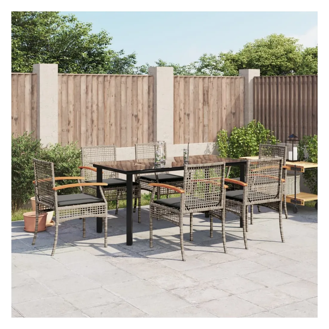 Cet ensemble de salle à manger de jardin est un excellent choix pour les repas en plein air ou pour vous détendre dans le jardin, dans l'arrière-cour ou sur la terrasse. Matériau durable : la résine tressée, également connue sous le nom de poly rotin, est un matériau synthétique solide et nécessitant peu d'entretien qui ressemble au rotin naturel. Il est léger, facile à nettoyer et couramment utilisé pour les meubles d'extérieur en raison de sa durabilité et de ses propriétés de résistance aux intempéries.Expérience d'assise confortable : ce mobilier d'extérieur, doté de coussins épais, offre une expérience d'assise confortable.Housse amovible et lavable : ces coussins de siège sont dotés de housses amovibles pour un lavage et un entretien faciles.Dessus en verre : le dessus de la table d'extérieur est fabriqué en verre trempé solide et durable, ce qui le rend facile à nettoyer avec un chiffon humide et ajoute une touche d'élégance à votre espace extérieur.Cadre robuste et stable : le cadre en acier enduit de poudre assure la solidité et la stabilité du meuble de jardin pour une utilisation quotidienne à l'extérieur. Bon à savoir :Pour que vos meubles d'extérieur restent beaux, nous vous recommandons de les protéger avec une housse imperméable.
