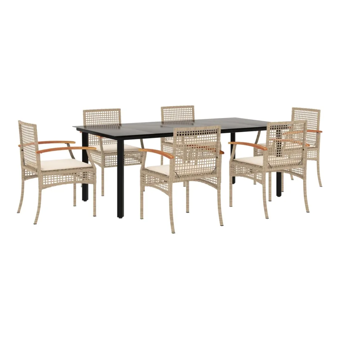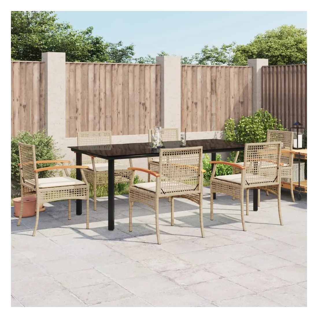Cet ensemble de salle à manger de jardin est un excellent choix pour les repas en plein air ou pour vous détendre dans le jardin, dans l'arrière-cour ou sur la terrasse. Matériau durable : la résine tressée, également connue sous le nom de poly rotin, est un matériau synthétique solide et nécessitant peu d'entretien qui ressemble au rotin naturel. Il est léger, facile à nettoyer et couramment utilisé pour les meubles d'extérieur en raison de sa durabilité et de ses propriétés de résistance aux intempéries.Expérience d'assise confortable : ce mobilier d'extérieur, doté de coussins épais, offre une expérience d'assise confortable.Housse amovible et lavable : ces coussins de siège sont dotés de housses amovibles pour un lavage et un entretien faciles.Dessus en verre : le dessus de la table d'extérieur est fabriqué en verre trempé solide et durable, ce qui le rend facile à nettoyer avec un chiffon humide et ajoute une touche d'élégance à votre espace extérieur.Cadre robuste et stable : le cadre en acier enduit de poudre assure la solidité et la stabilité du meuble de jardin pour une utilisation quotidienne à l'extérieur. Bon à savoir :Pour que vos meubles d'extérieur restent beaux, nous vous recommandons de les protéger avec une housse imperméable.