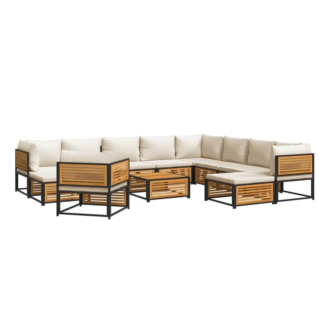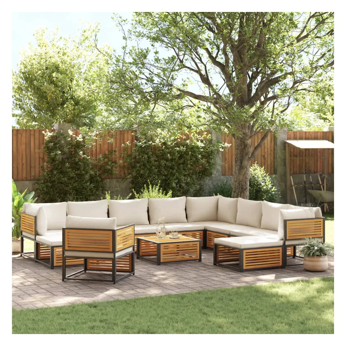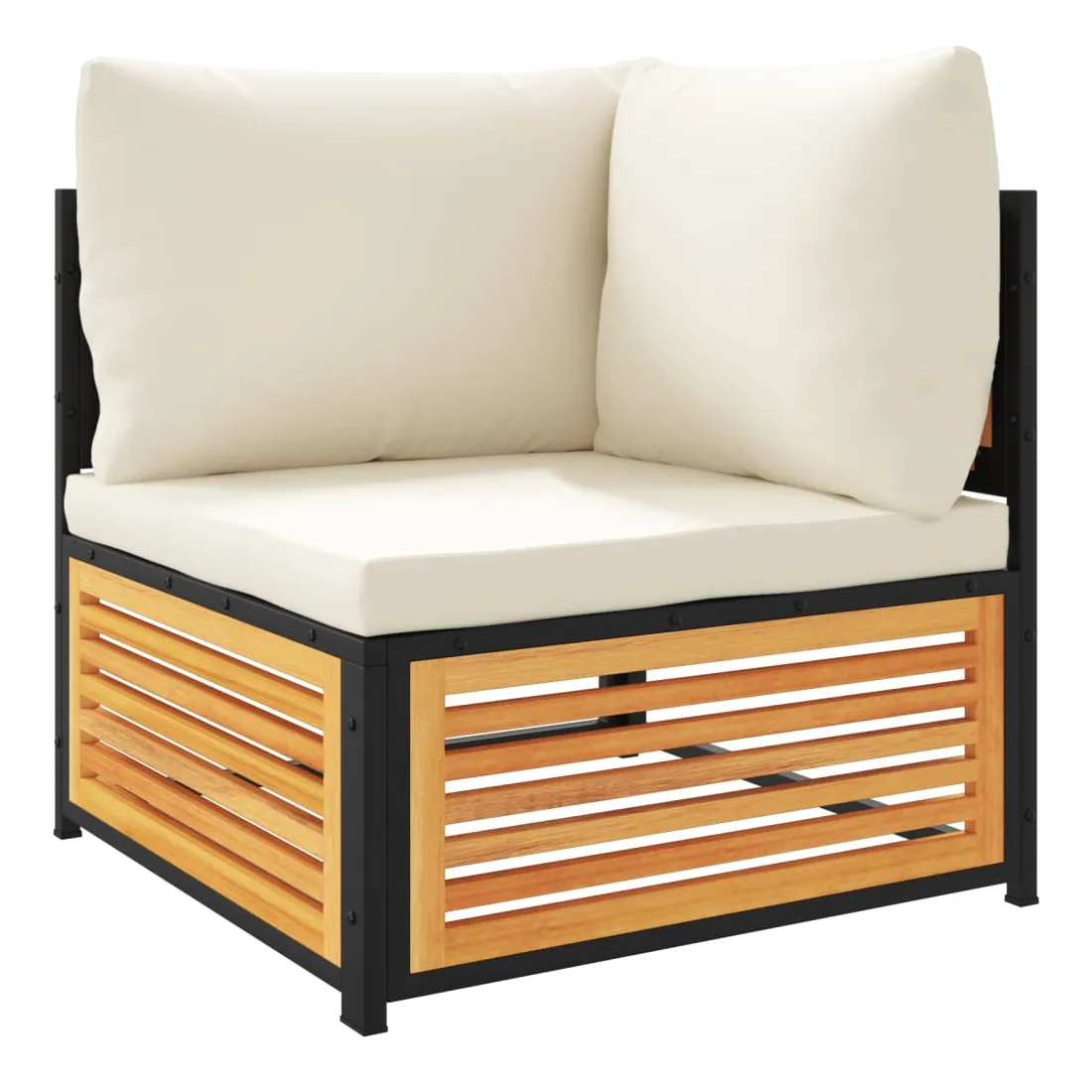 Cet ensemble de canapés de jardin est le complément parfait de votre arrière-cour, terrasse ou patio, offrant un espace confortable et accueillant pour discuter avec la famille et les amis ou simplement se détendre et profiter de l'extérieur. Cadre robuste et stable : le bois d'acacia massif est connu pour sa solidité et sa durabilité. Ses couleurs variées et ses grains uniques lui confèrent un aspect attrayant. Sa stabilité et sa résistance aux intempéries en font un matériau idéal pour la fabrication de meubles d'intérieur et d'extérieur. De plus, le cadre en acier enduit de poudre garantit la solidité et la stabilité du mobilier de jardin pour une utilisation quotidienne en extérieur. Dessus stable et facile à nettoyer : cette table de jardin a un dessus en bois d'acacia robuste, durable et facile à nettoyer avec un chiffon humide. Bonne ventilation et prévention de l'accumulation d'eau : la conception à lattes favorise une circulation optimale de l'air et empêche efficacement l'accumulation d'eau, assurant ainsi un mobilier de jardin sec et confortable.Expérience d'assise confortable : ce mobilier d'extérieur, doté de coussins épais, offre une expérience d'assise confortable. Housse amovible et lavable : ces coussins de siège sont dotés de housses amovibles pour un lavage et un entretien faciles. Bon à savoir :Pour que vos meubles d'extérieur restent beaux, nous vous recommandons de les protéger avec une housse imperméable.