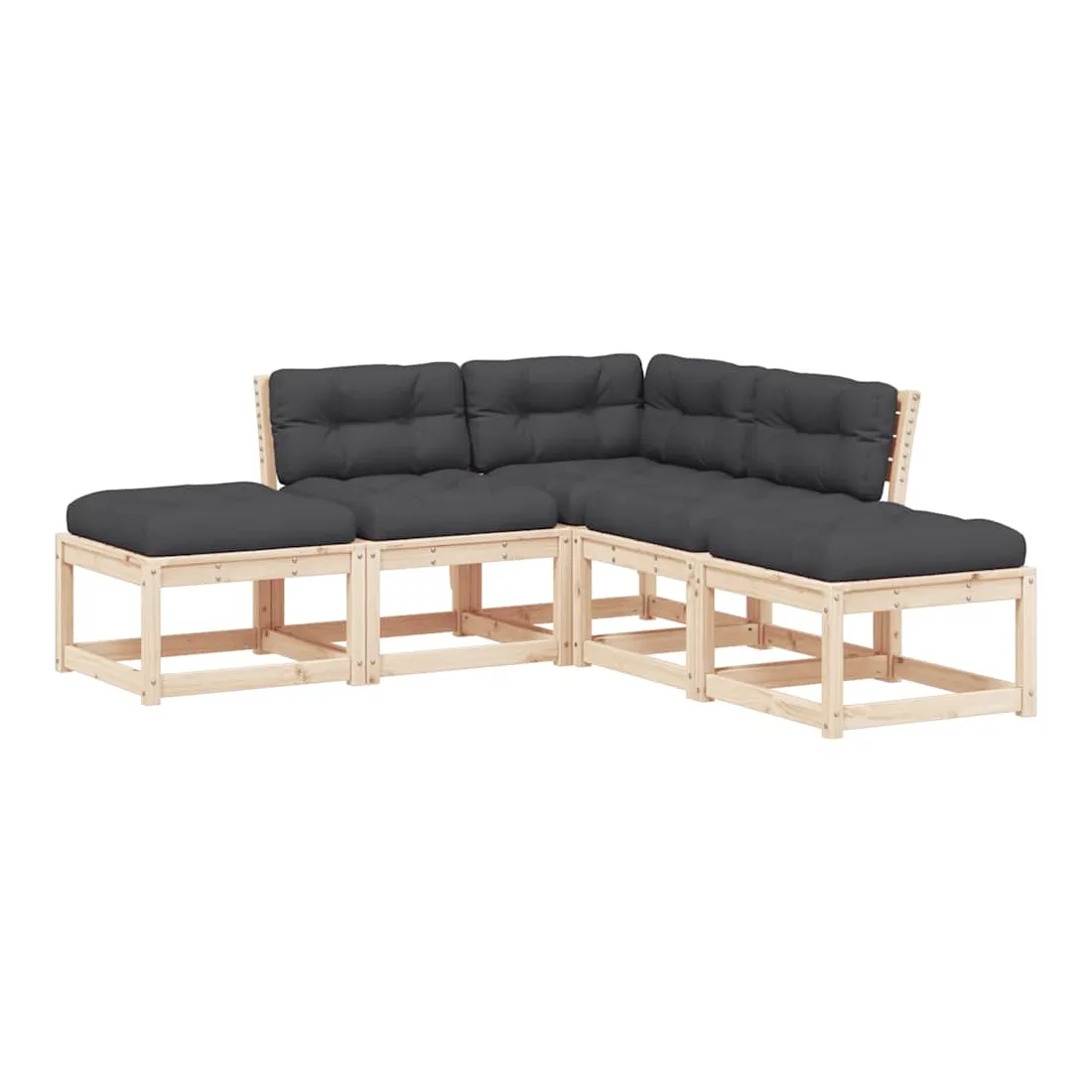 Cet ensemble de canapés de jardin est le complément parfait de votre arrière-cour, terrasse ou patio, offrant un espace confortable et accueillant pour discuter avec la famille et les amis ou simplement se détendre et profiter de l'extérieur. Bois de pin massif : le bois de pin massif est un matériau naturel magnifique. Le bois de pin a un grain droit et les nœuds donnent au matériau son aspect caractéristique et rustique.Expérience d'assise confortable : ce mobilier d'extérieur, doté de dossiers et de coussin épais rembourré, offre une expérience d'assise confortable.Conception à lattes : la conception à lattes du canapé d'extérieur empêche efficacement l'eau de s'accumuler, ce qui garantit que l'assise reste sèche et exempte de tout risque de pourriture.Conception modulaire : cet ensemble de meubles d'extérieur a une conception modulaire, ce qui le rend complètement flexible et facile à déplacer, afin que vous puissiez créer un agencement de meubles d'extérieur personnalisé. Bon à savoir :Pour que vos meubles d'extérieur restent beaux, nous vous recommandons de les protéger avec une housse imperméable.