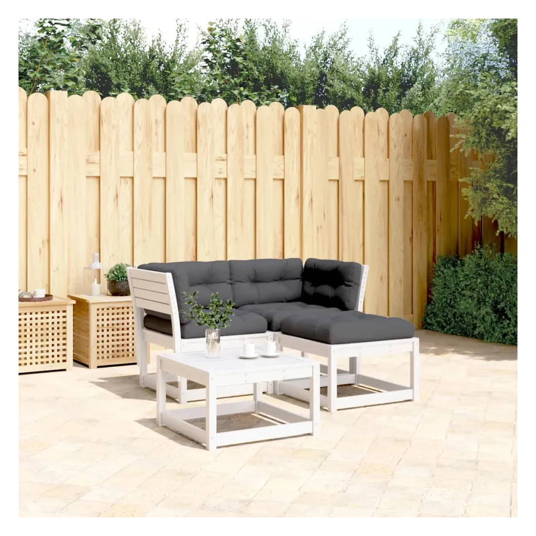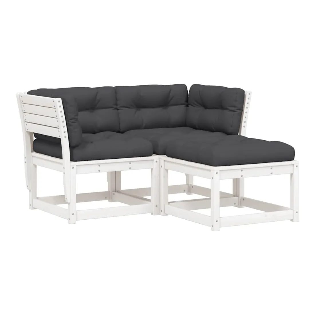 Cet ensemble de canapés de jardin est le complément parfait de votre arrière-cour, terrasse ou patio, offrant un espace confortable et accueillant pour discuter avec la famille et les amis ou simplement se détendre et profiter de l'extérieur. Bois de pin massif : le bois de pin massif est un matériau naturel magnifique. Le bois de pin a un grain droit et les nœuds donnent au matériau son aspect caractéristique et rustique.Expérience d'assise confortable : ce mobilier d'extérieur, doté de dossiers et de coussin épais rembourré, offre une expérience d'assise confortable.Conception à lattes : la conception à lattes du canapé d'extérieur empêche efficacement l'eau de s'accumuler, ce qui garantit que l'assise reste sèche et exempte de tout risque de pourriture.Conception modulaire : cet ensemble de meubles d'extérieur a une conception modulaire, ce qui le rend complètement flexible et facile à déplacer, afin que vous puissiez créer un agencement de meubles d'extérieur personnalisé. Bon à savoir :Pour que vos meubles d'extérieur restent beaux, nous vous recommandons de les protéger avec une housse imperméable.