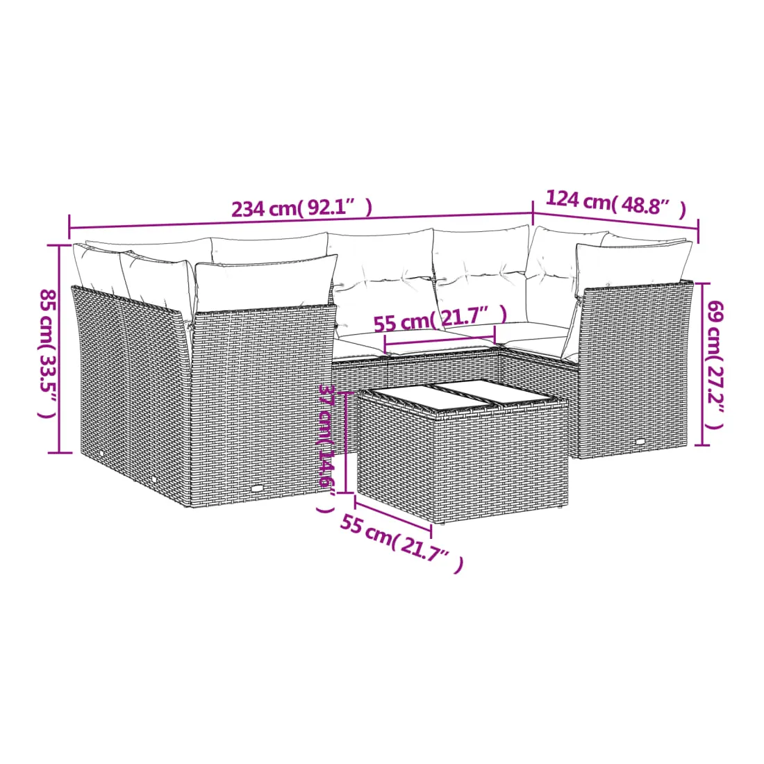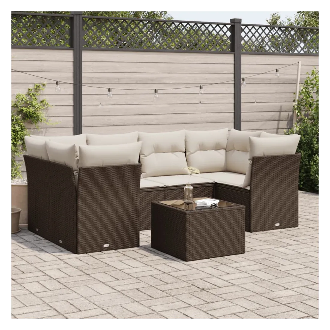 Cet ensemble de canapés de jardin est le complément parfait de votre arrière-cour, terrasse ou patio, offrant un espace confortable et accueillant pour discuter avec la famille et les amis ou simplement se détendre et profiter de l'extérieur. Matériau durable : la résine tressée, également connue sous le nom de poly rotin, est un matériau synthétique solide et nécessitant peu d'entretien qui ressemble au rotin naturel. Il est léger, facile à nettoyer et couramment utilisé pour les meubles d'extérieur en raison de sa durabilité et de ses propriétés de résistance aux intempéries.Expérience d'assise confortable : cet ensemble de meubles d'extérieur, doté de coussins épais, offre une expérience d'assise confortable.Housse amovible et lavable : ces coussins de siège sont dotés de housses amovibles pour un lavage et un entretien faciles.Dessus en verre : le dessus de la table d'extérieur est fabriqué en verre trempé solide et durable, ce qui le rend facile à nettoyer avec un chiffon humide et ajoute une touche d'élégance à votre espace extérieur.Conception modulaire : cet ensemble de meubles d'extérieur a une conception modulaire, ce qui le rend complètement flexible et facile à déplacer, afin que vous puissiez créer un agencement de meubles d'extérieur personnalisé. Bon à savoir :Pour que vos meubles d'extérieur restent beaux, nous vous recommandons de les protéger avec une housse imperméable.