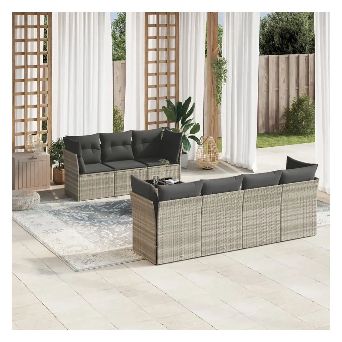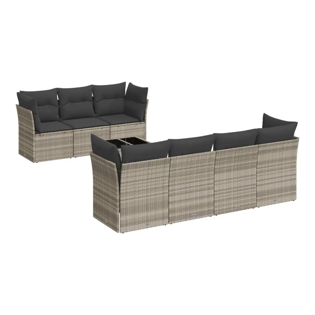 Salon de jardin 8 pcs avec coussins gris clair résine tressée