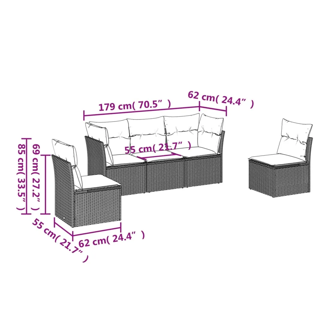 Cet ensemble de canapés de jardin est le complément parfait de votre arrière-cour, terrasse ou patio, offrant un espace confortable et accueillant pour discuter avec la famille et les amis ou simplement se détendre et profiter de l'extérieur. Matériau durable : la résine tressée, également connue sous le nom de poly rotin, est un matériau synthétique solide et nécessitant peu d'entretien qui ressemble au rotin naturel. Il est léger, facile à nettoyer et couramment utilisé pour les meubles d'extérieur en raison de sa durabilité et de ses propriétés de résistance aux intempéries.Expérience d'assise confortable : cet ensemble de meubles d'extérieur, doté de coussins épais, offre une expérience d'assise confortable.Housse amovible et lavable : ces coussins de siège sont dotés de housses amovibles pour un lavage et un entretien faciles.Conception modulaire : cet ensemble de meubles d'extérieur a une conception modulaire, ce qui le rend complètement flexible et facile à déplacer, afin que vous puissiez créer un agencement de meubles d'extérieur personnalisé. Bon à savoir :Pour que vos meubles d'extérieur restent beaux, nous vous recommandons de les protéger avec une housse imperméable.