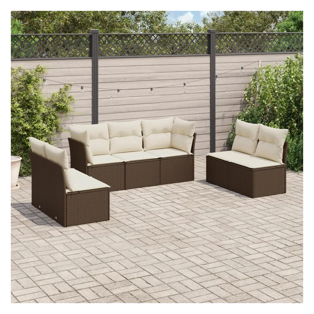 Cet ensemble de canapés de jardin est le complément parfait de votre arrière-cour, terrasse ou patio, offrant un espace confortable et accueillant pour discuter avec la famille et les amis ou simplement se détendre et profiter de l'extérieur. Matériau durable : la résine tressée, également connue sous le nom de poly rotin, est un matériau synthétique solide et nécessitant peu d'entretien qui ressemble au rotin naturel. Il est léger, facile à nettoyer et couramment utilisé pour les meubles d'extérieur en raison de sa durabilité et de ses propriétés de résistance aux intempéries.Expérience d'assise confortable : cet ensemble de meubles d'extérieur, doté de coussins épais, offre une expérience d'assise confortable.Housse amovible et lavable : ces coussins de siège sont dotés de housses amovibles pour un lavage et un entretien faciles.Conception modulaire : cet ensemble de meubles d'extérieur a une conception modulaire, ce qui le rend complètement flexible et facile à déplacer, afin que vous puissiez créer un agencement de meubles d'extérieur personnalisé. Bon à savoir :Pour que vos meubles d'extérieur restent beaux, nous vous recommandons de les protéger avec une housse imperméable.