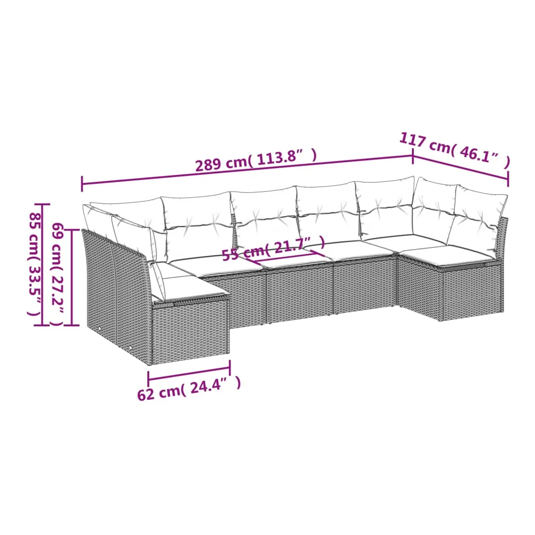 - Dimensions du coussin de dossier : 55 x 45 x 13 cm (L x l x é)