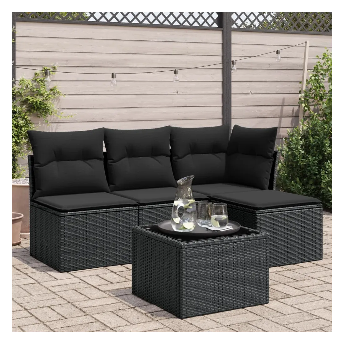Cet ensemble de canapés de jardin est le complément parfait de votre arrière-cour, terrasse ou patio, offrant un espace confortable et accueillant pour discuter avec la famille et les amis ou simplement se détendre et profiter de l'extérieur. Matériau durable : la résine tressée, également connue sous le nom de poly rotin, est un matériau synthétique solide et nécessitant peu d'entretien qui ressemble au rotin naturel. Il est léger, facile à nettoyer et couramment utilisé pour les meubles d'extérieur en raison de sa durabilité et de ses propriétés de résistance aux intempéries.Expérience d'assise confortable : cet ensemble de meubles d'extérieur, doté de coussins épais, offre une expérience d'assise confortable.Housse amovible et lavable : ces coussins de siège sont dotés de housses amovibles pour un lavage et un entretien faciles.Dessus en verre : le dessus de la table d'extérieur est fabriqué en verre trempé solide et durable, ce qui le rend facile à nettoyer avec un chiffon humide et ajoute une touche d'élégance à votre espace extérieur.Conception modulaire : cet ensemble de meubles d'extérieur a une conception modulaire, ce qui le rend complètement flexible et facile à déplacer, afin que vous puissiez créer un agencement de meubles d'extérieur personnalisé. Bon à savoir :Pour que vos meubles d'extérieur restent beaux, nous vous recommandons de les protéger avec une housse imperméable.