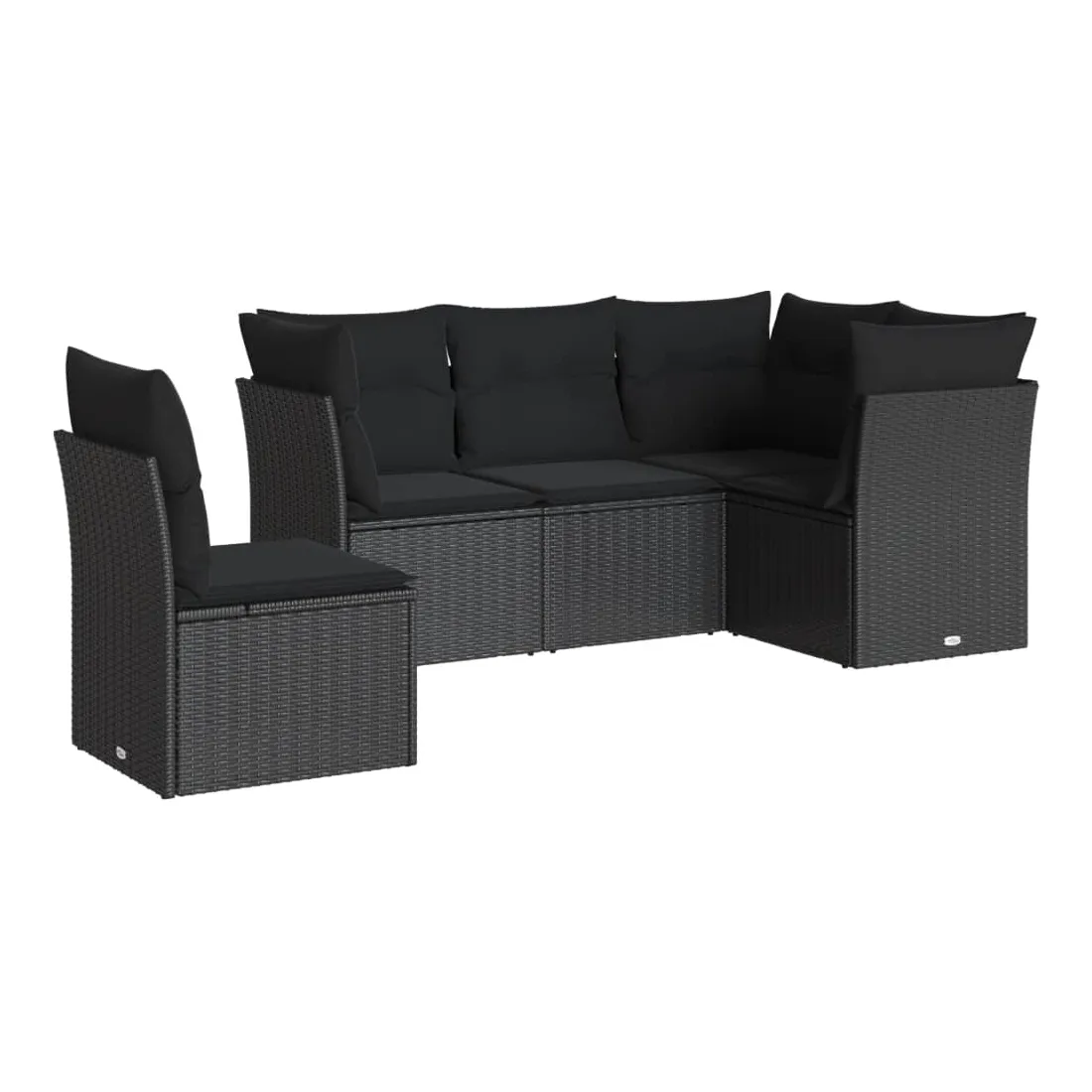 Salon de jardin 5 pcs avec coussins noir résine tressée