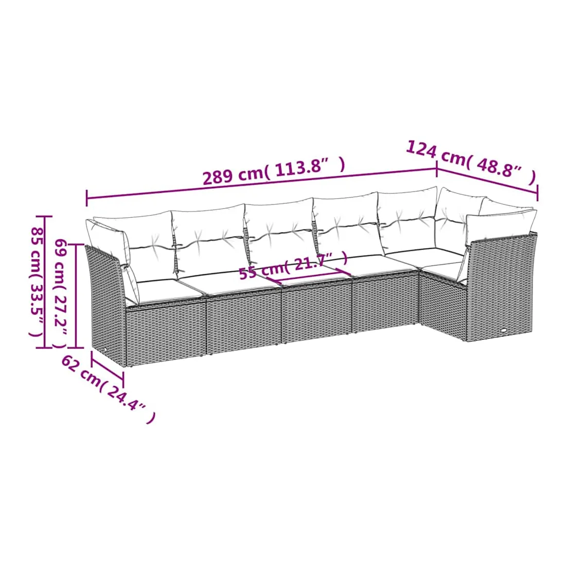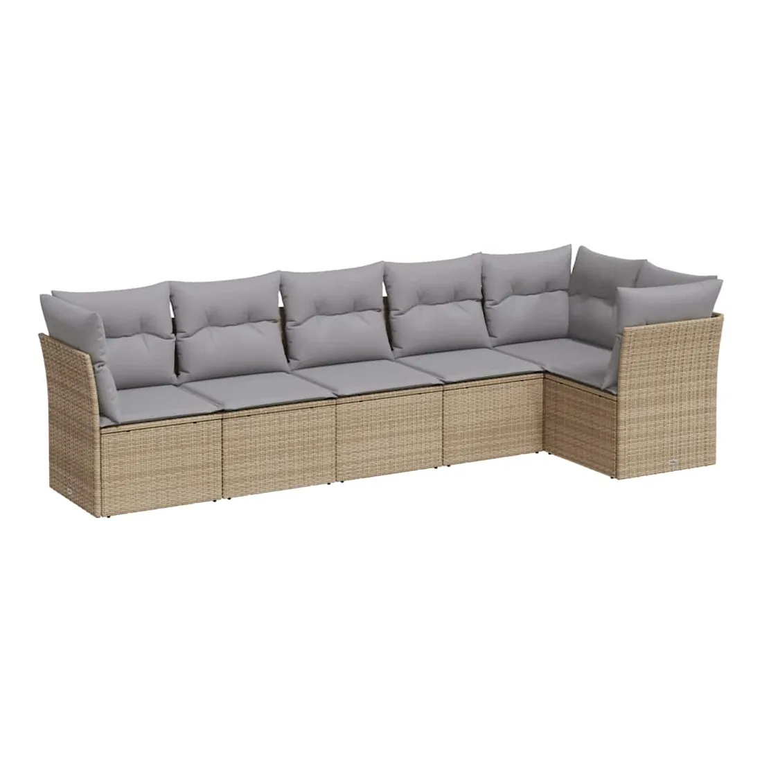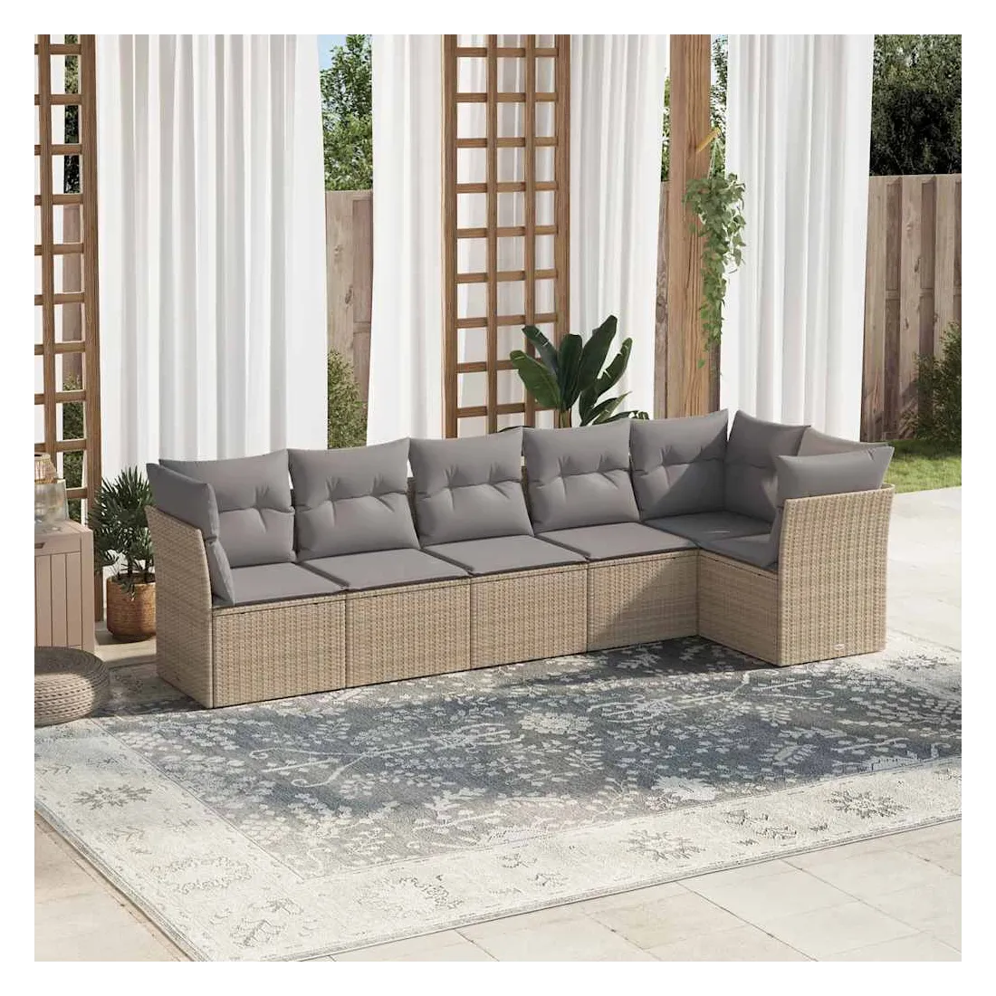 Salon de jardin avec coussins 6 pcs beige résine tressée