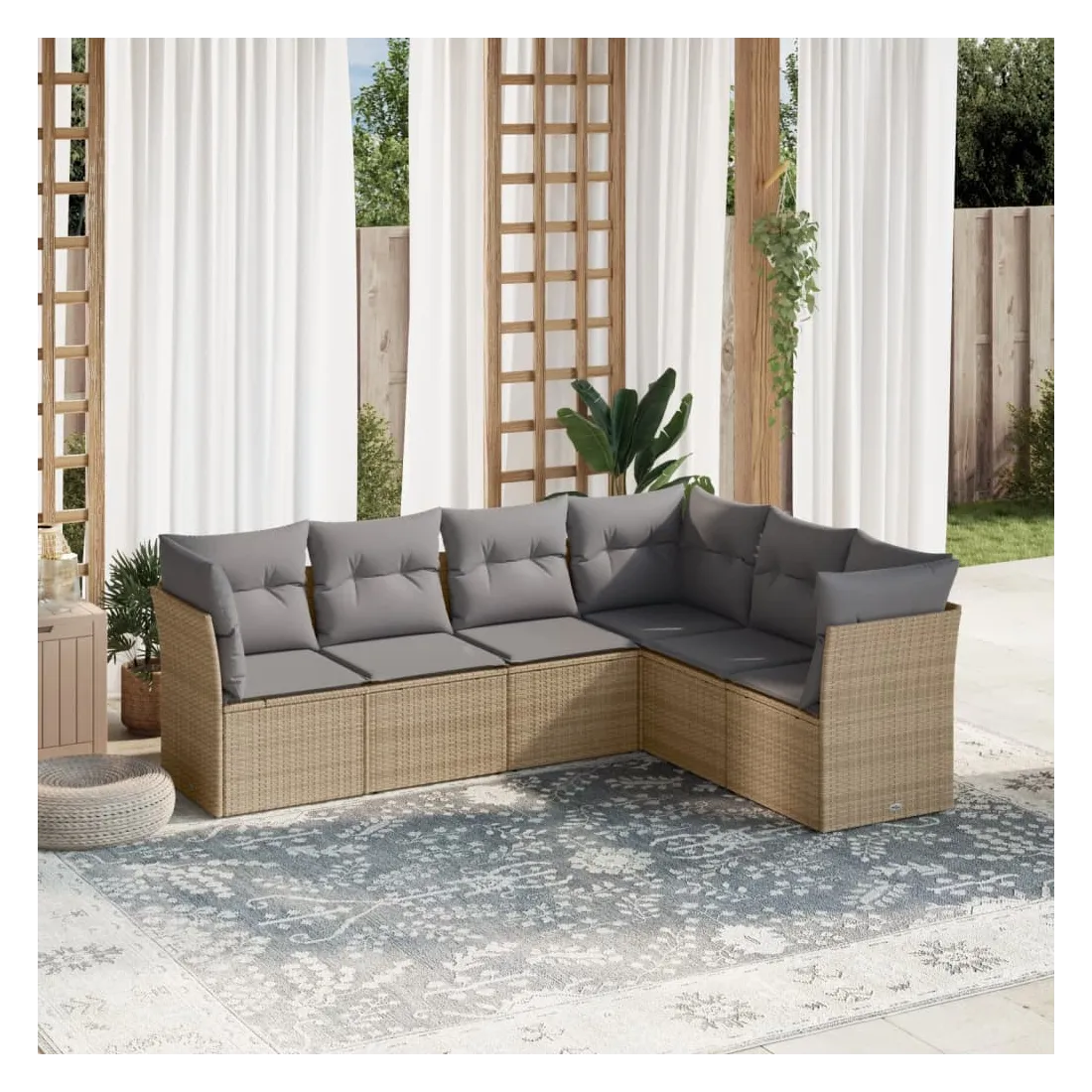 Salon de jardin avec coussins 6 pcs beige résine tressée
