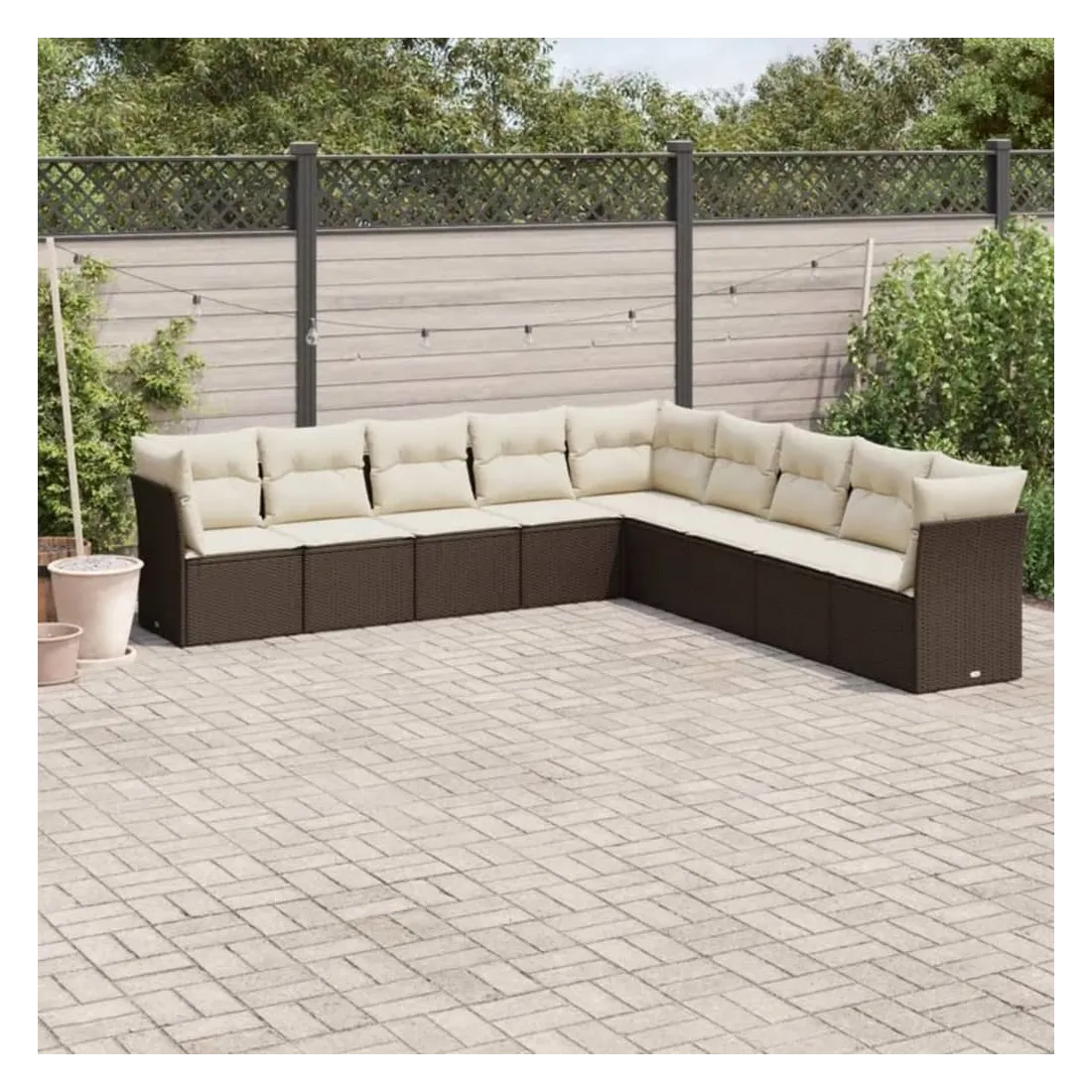 Cet ensemble de canapés de jardin est le complément parfait de votre arrière-cour, terrasse ou patio, offrant un espace confortable et accueillant pour discuter avec la famille et les amis ou simplement se détendre et profiter de l'extérieur. Matériau durable : la résine tressée, également connue sous le nom de poly rotin, est un matériau synthétique solide et nécessitant peu d'entretien qui ressemble au rotin naturel. Il est léger, facile à nettoyer et couramment utilisé pour les meubles d'extérieur en raison de sa durabilité et de ses propriétés de résistance aux intempéries.Expérience d'assise confortable : ce mobilier d'extérieur, doté de coussins épais, offre une expérience d'assise confortable.Housse amovible et lavable : ces coussins de siège sont dotés de housses amovibles pour un lavage et un entretien faciles.Conception modulaire : cet ensemble de meubles d'extérieur a une conception modulaire, ce qui le rend complètement flexible et facile à déplacer, afin que vous puissiez créer un agencement de meubles d'extérieur personnalisé. Bon à savoir :Pour que vos meubles d'extérieur restent beaux, nous vous recommandons de les protéger avec une housse imperméable.